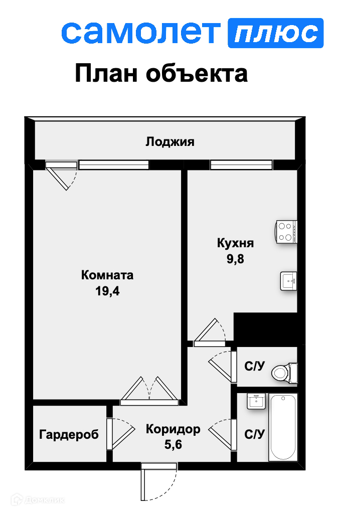 Жилая площадь 19.4 м2