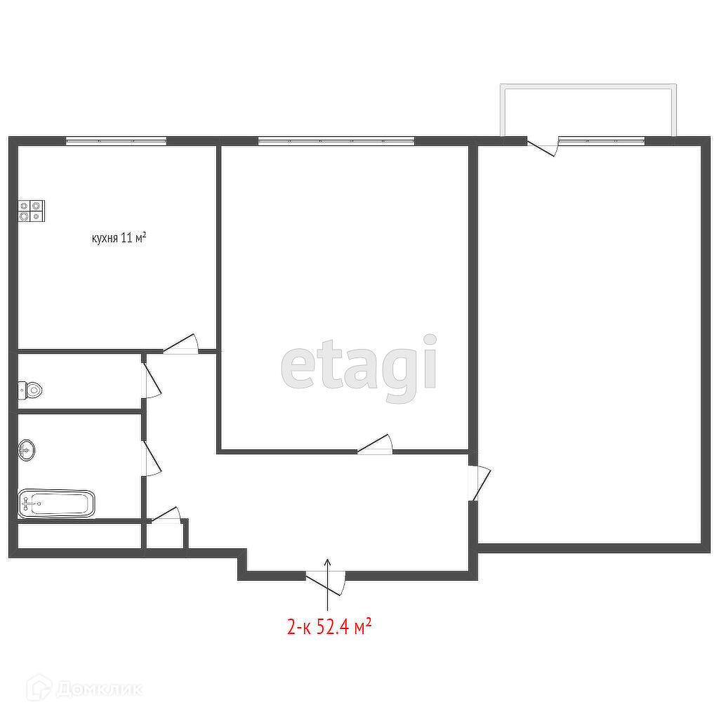 Общая площадь 52 м2