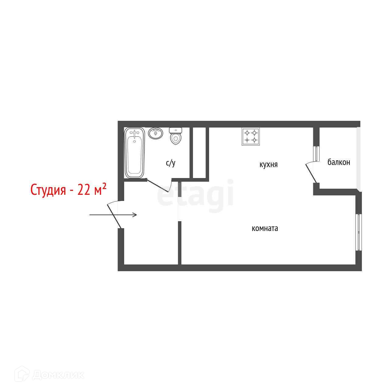 Общая площадь 22 м2