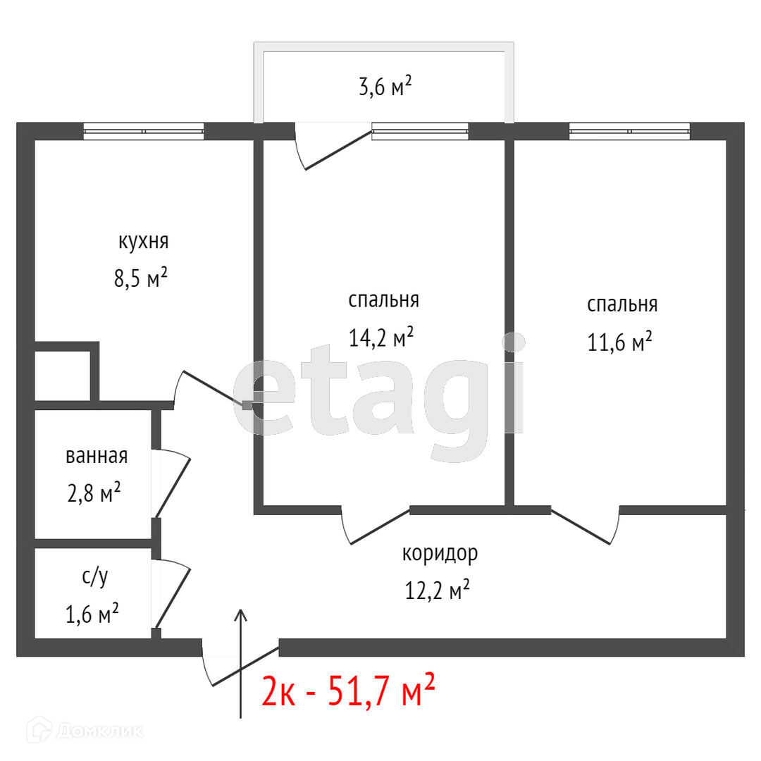 Общая площадь 51.7 м2