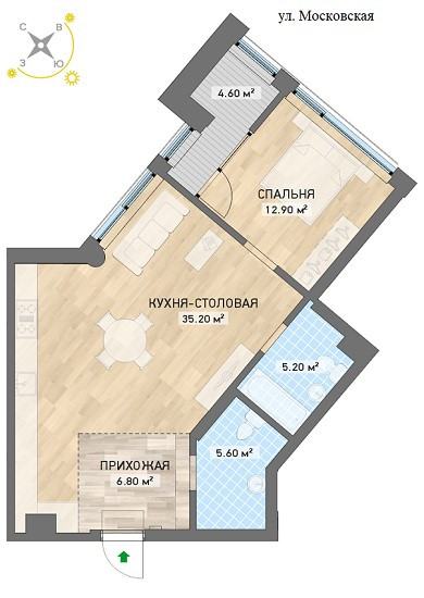 Площадь кухни 35.2 м2