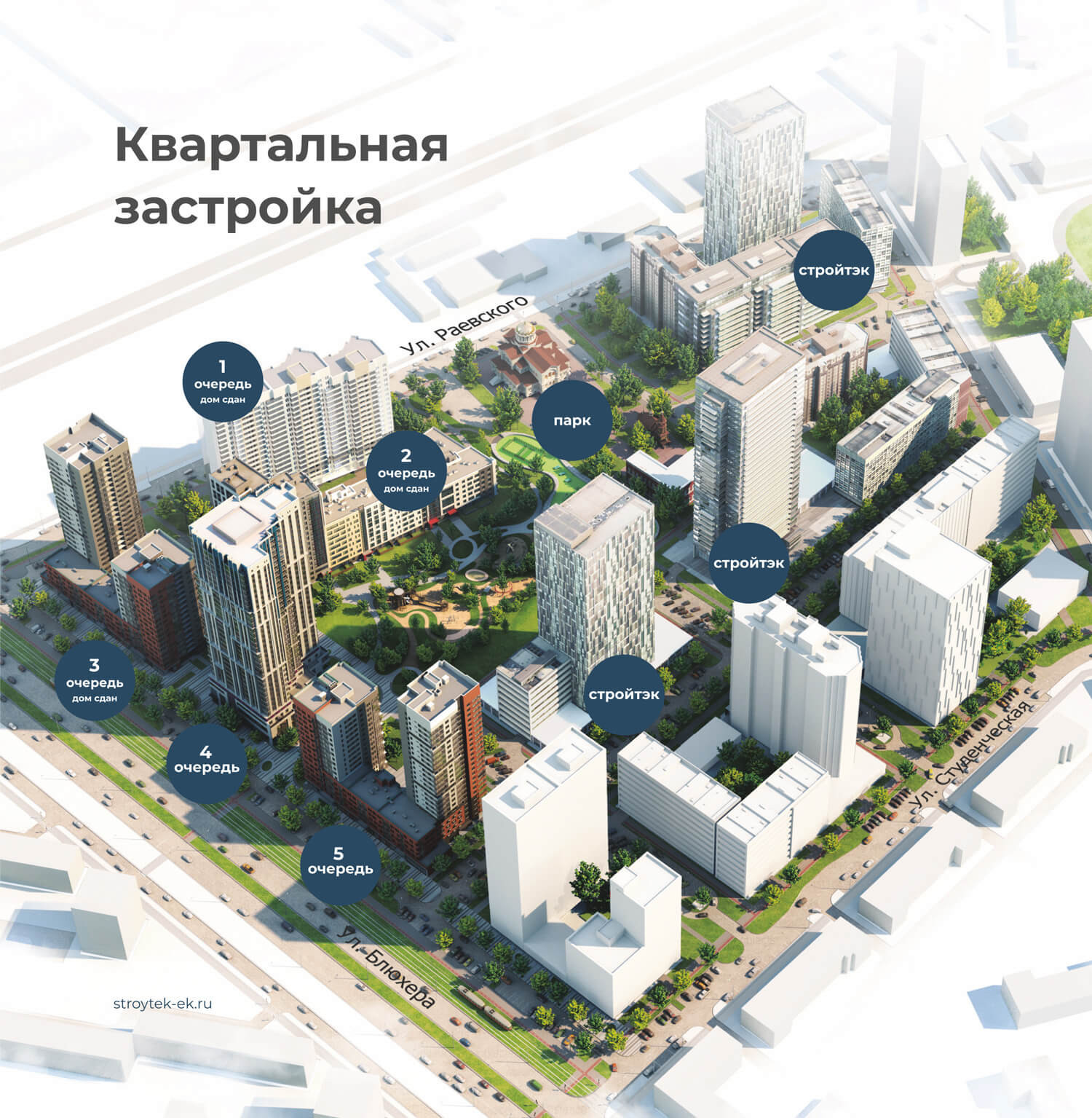 «Современник» — жилой квартал из 8 очередей строительства на пересечении Блюхера, Раевского, Комвузовской и Студенческой. Его сердце — собственный ландшафтный парк в 1 гектар — с прогулочными маршрутами и детскими площадками. В 10 минутах на машине проспект Ленина, в пешей доступности — Шарташский лесопарк. Дизайн проекта — от известного архитектурного бюро KCAP Architects & Planners.
