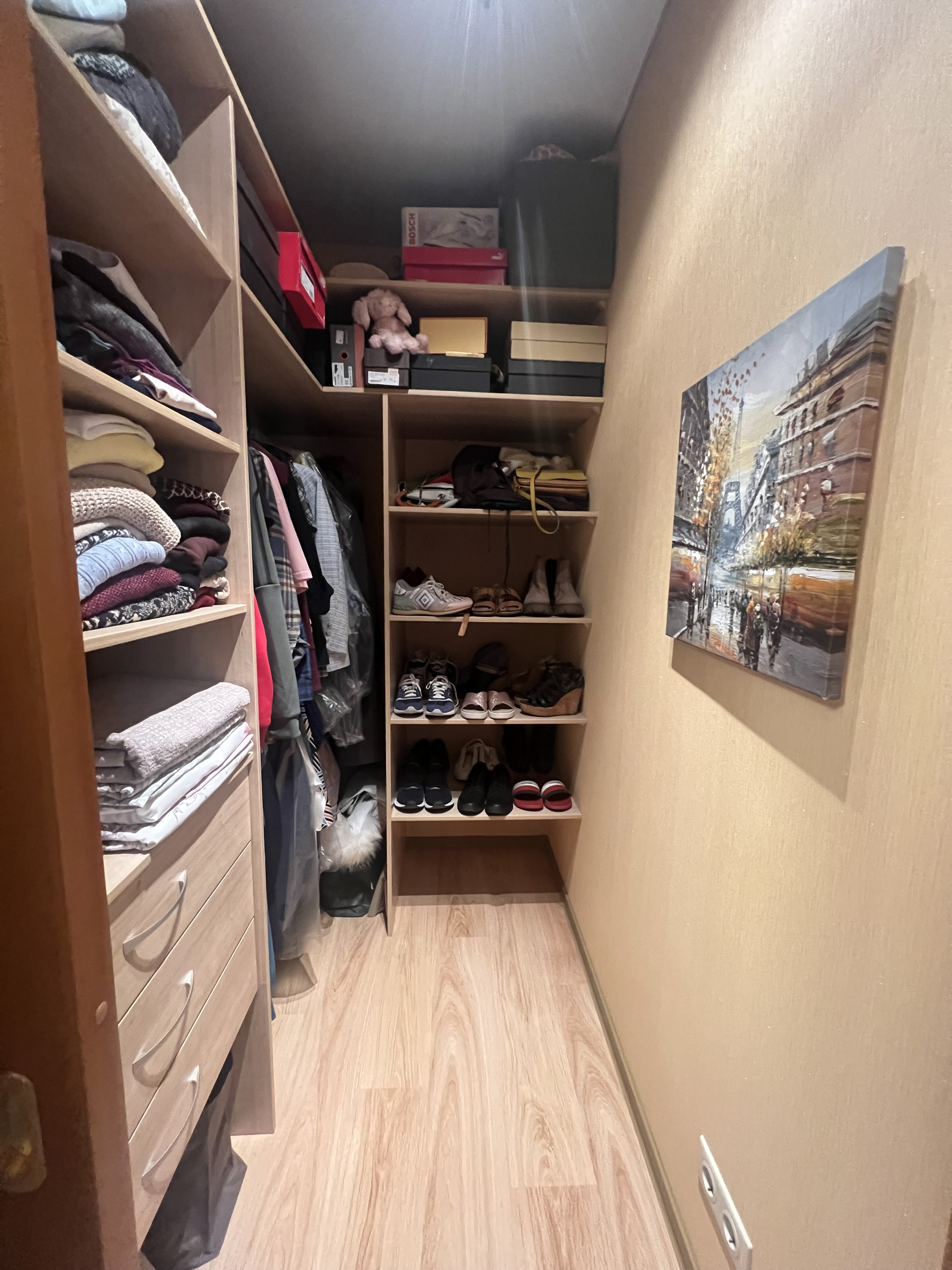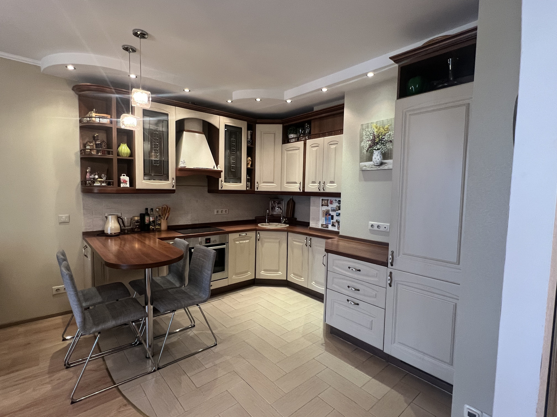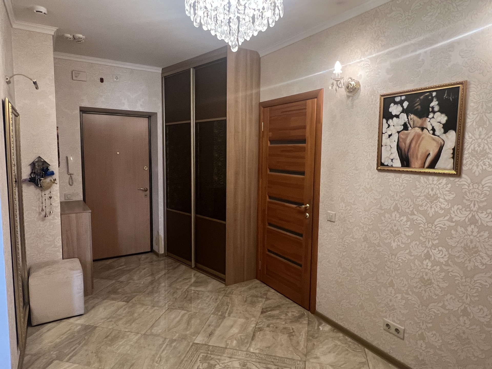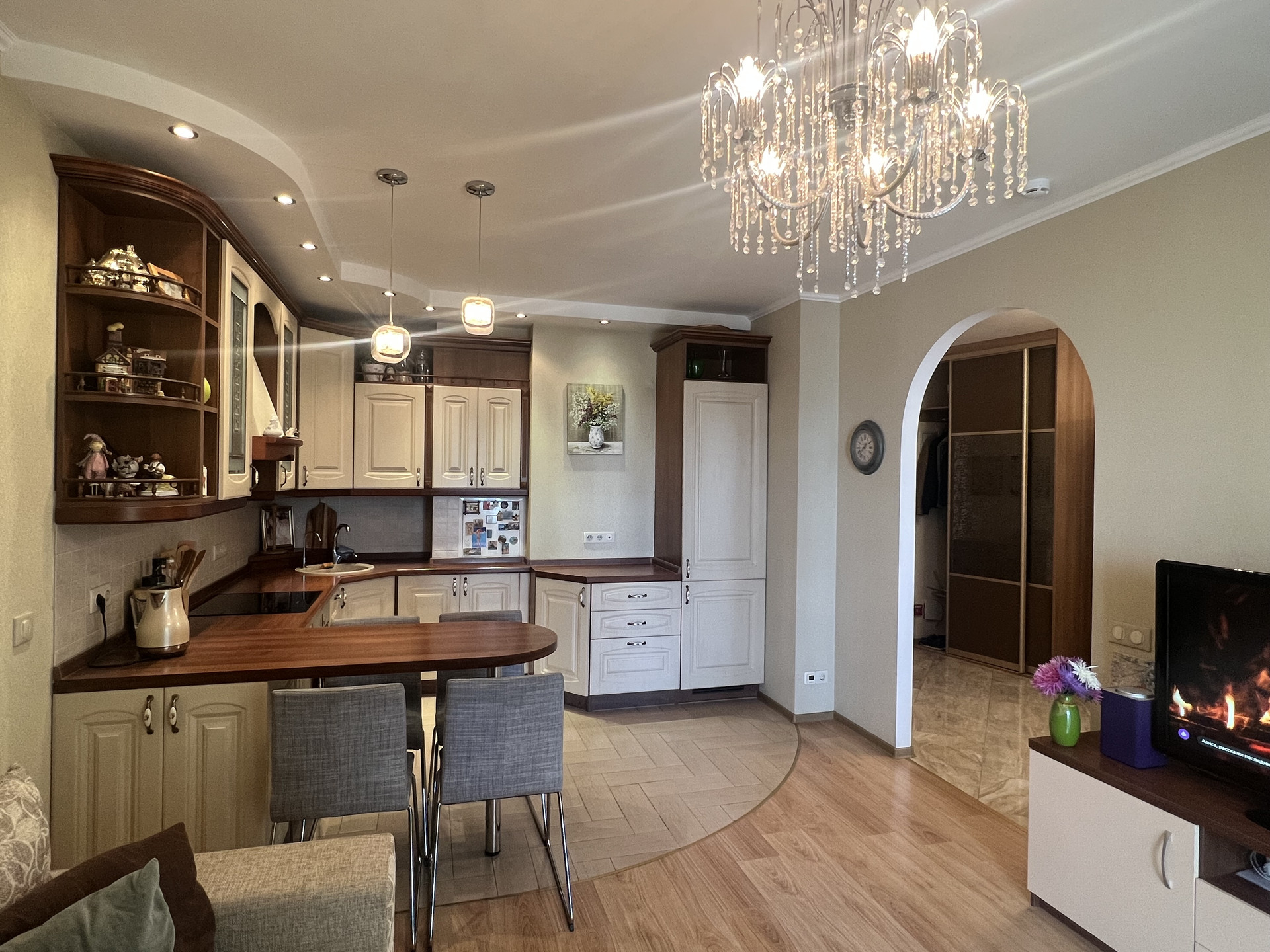 - Покупателю в качестве приятного бонуса остается кухонный гарнитур со встроенной техникой (варочная поверхность, вытяжка, духовой шкаф, посудомоечная машина, холодильник), шкаф - купе в прихожей, наполнение гардеробной.