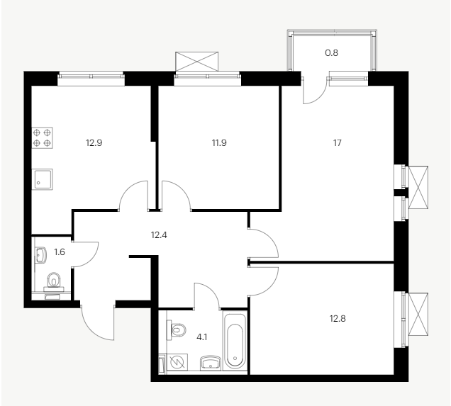 Площадь кухни 12.9 м2