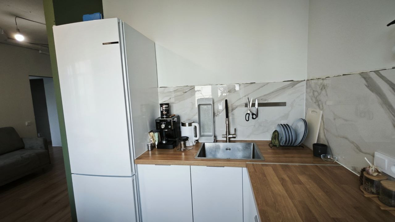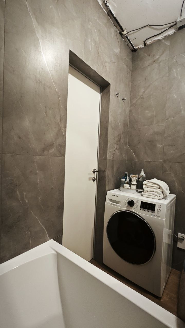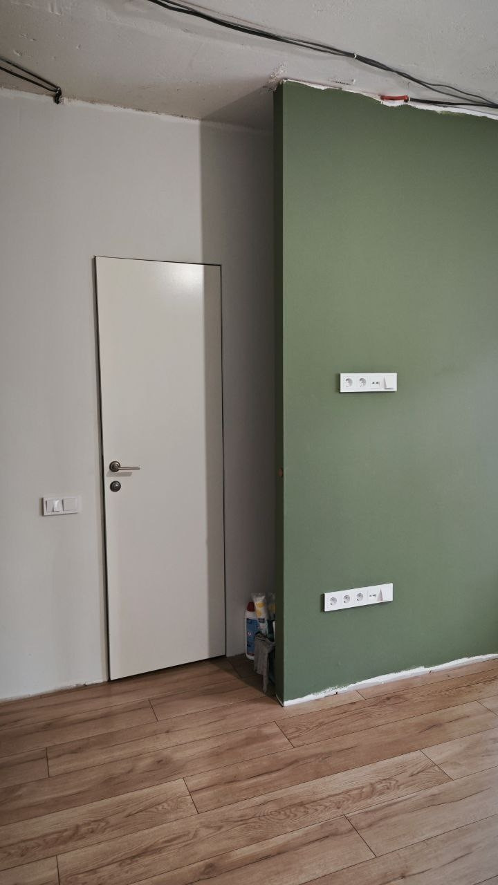 В квартире установлены скрытые двери, проведена система вентиляции с рекуперацией и фильтрами (окна для проветривания можно не открывать), продумано расположение розеток, сделаны проходные выключатели в комнатах, заложена трасса под кондиционер 12кBTU.