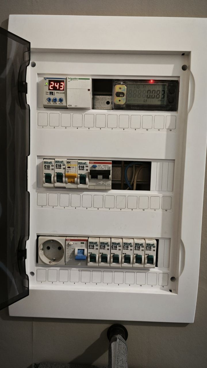 В коридоре: проведен тёплый пол, ниша под платяной шкаф, качественный Эл. щит с защитой от ударов током.