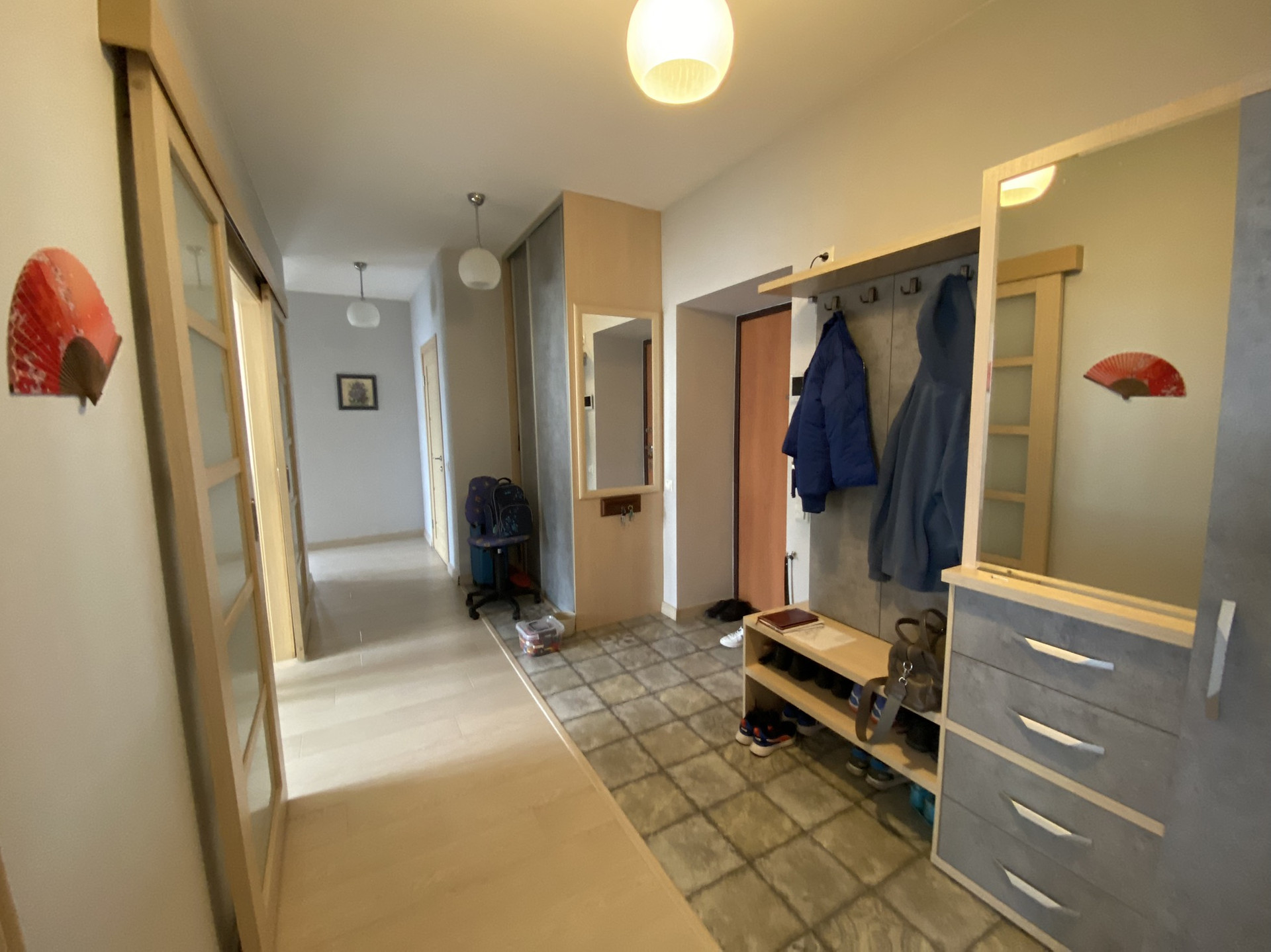 Недавно сделан ремонт, все стены и потолок выровнены, обои под окраску, теплый пол, двери из натурального дерева , в обеих лоджиях сделан пол и окна.