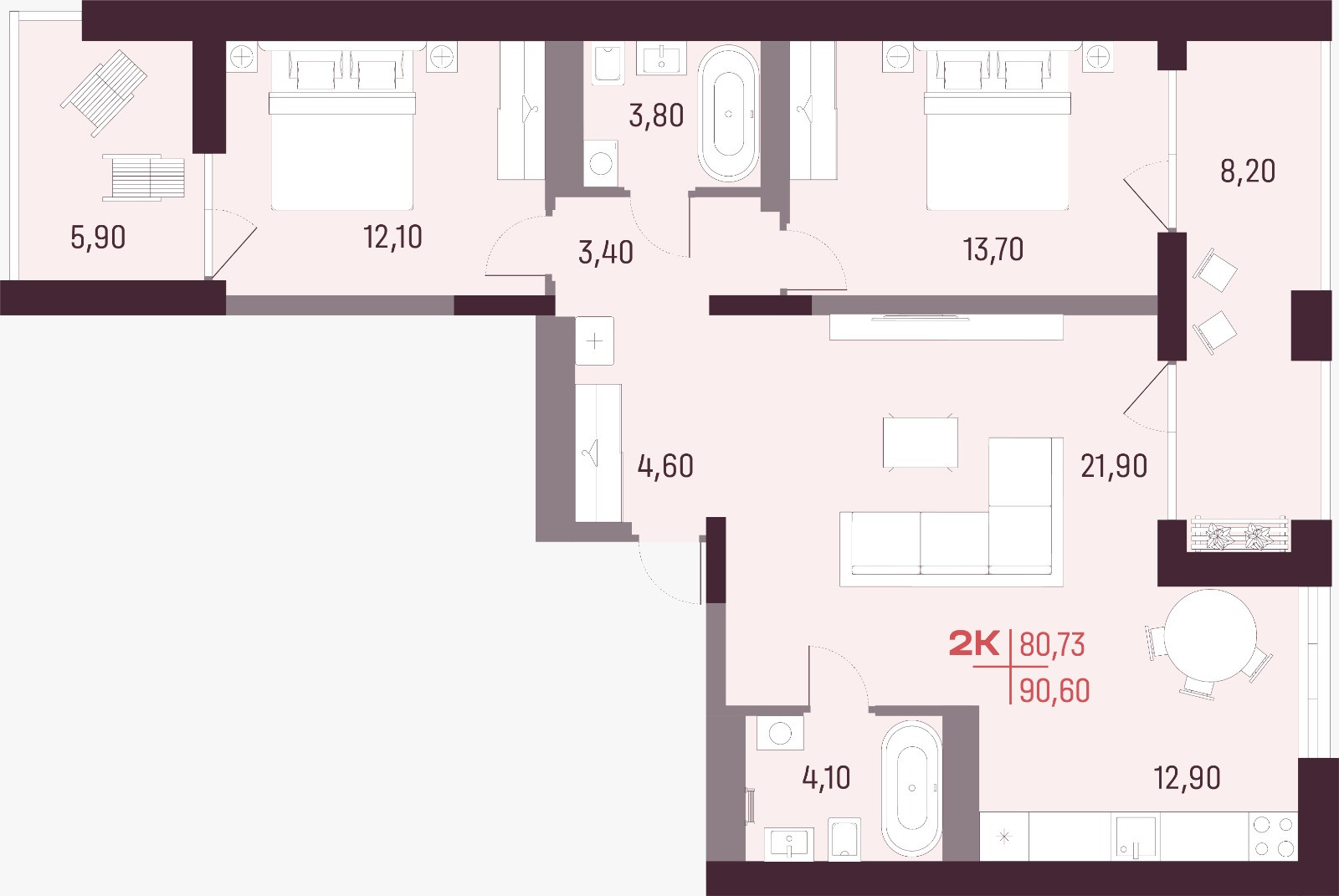Общая площадь 90.6 м2