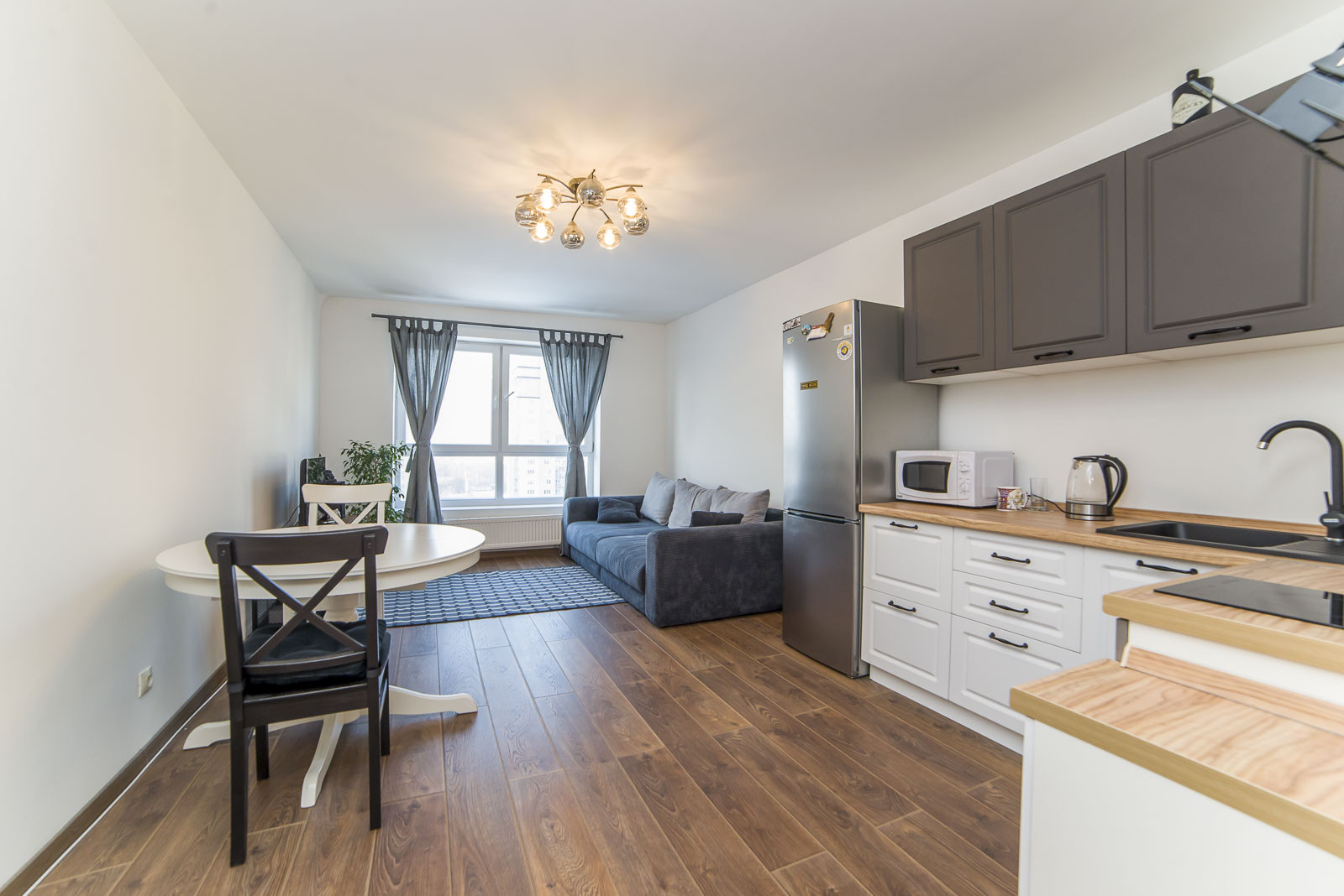-Качественный свежий ремонт, свежая мебель в минималистичном дизайне.