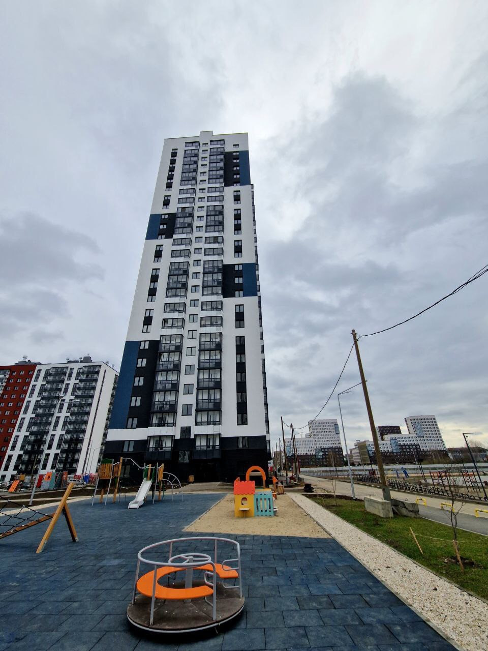 жилом квартале "Меридиан". Дом 2022 года постройки, застройщик "ЛСР". Территория двора оборудована детскими, игровыми и спортивными площадками, зонами для отдыха. Вокруг развитая инфраструктура: рядом с домом школа, детский сад, гипермаркет "Лента", аптеки и множество других магазинов. В доме два пассажирских скоростных лифта и один грузовой, уютный холл, видеонаблюдение, подъезд современного диза