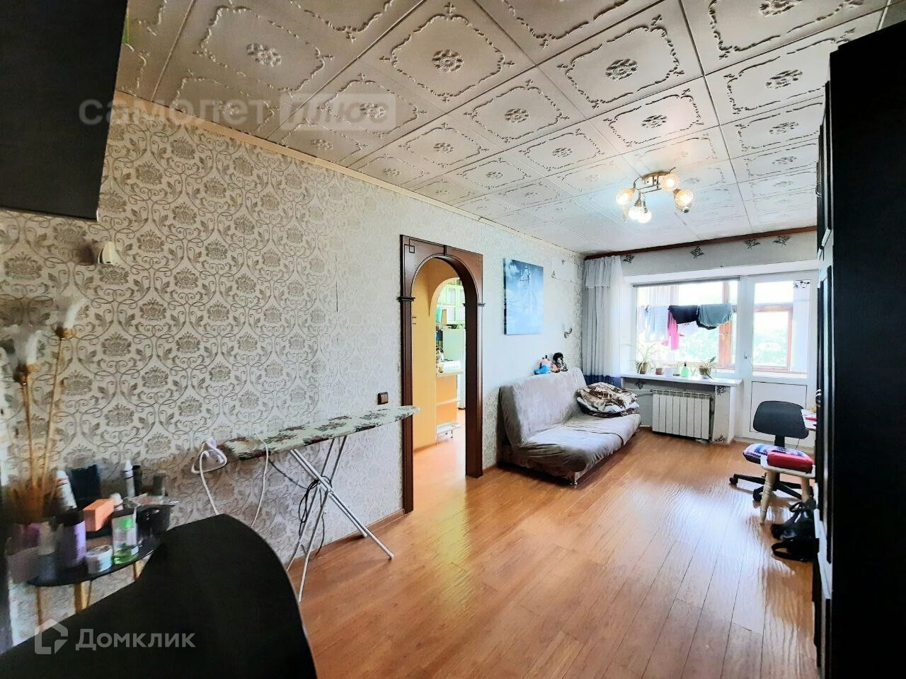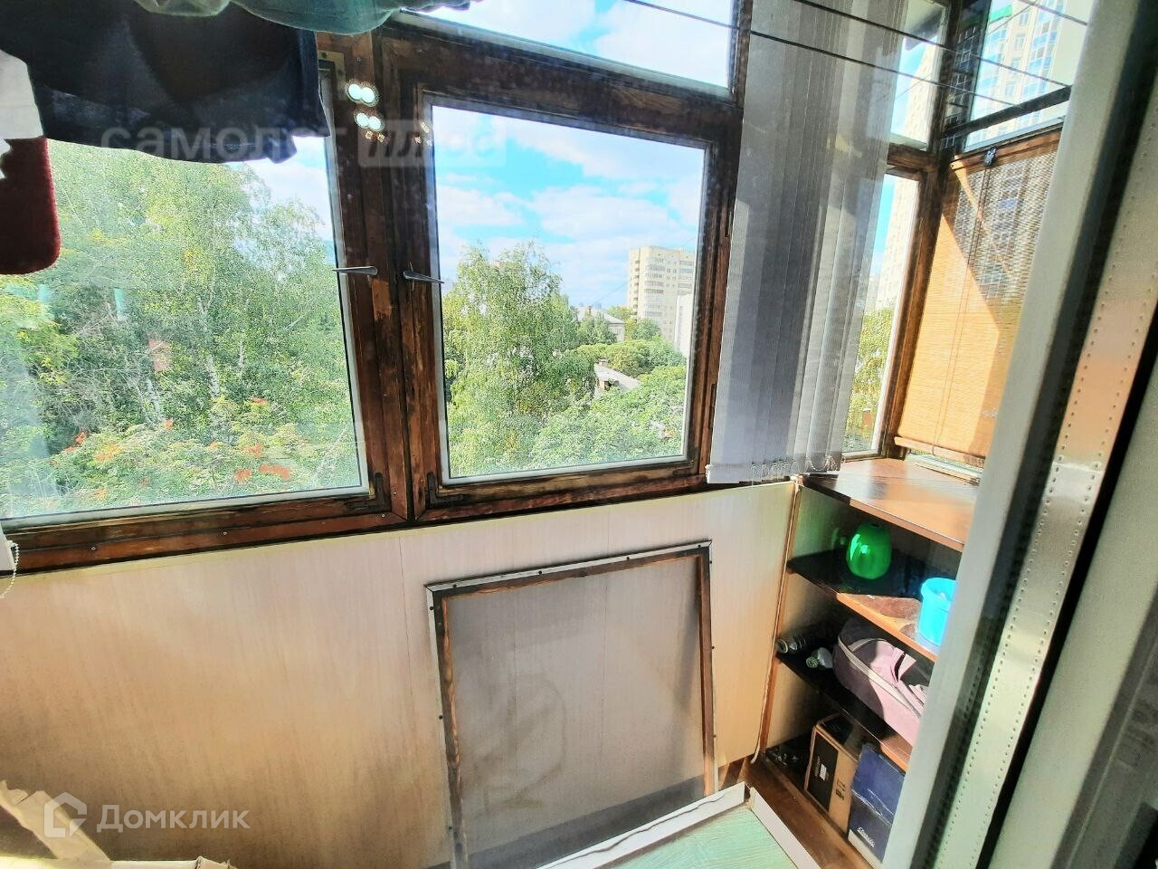 - балкон с видом на зеленый двор. Застеклён,