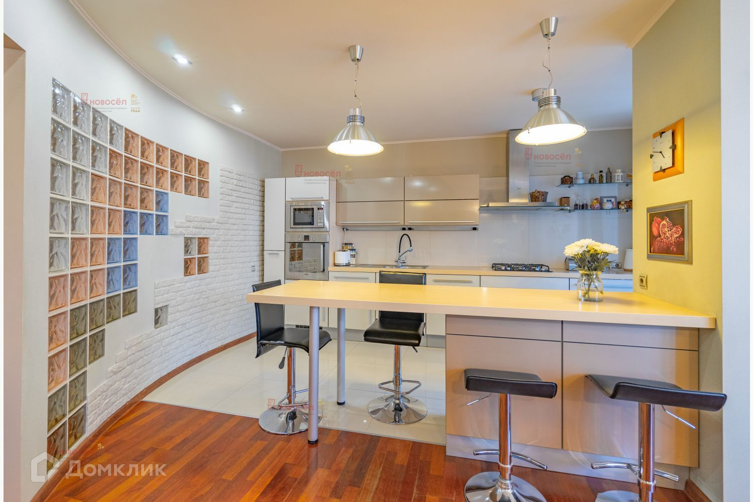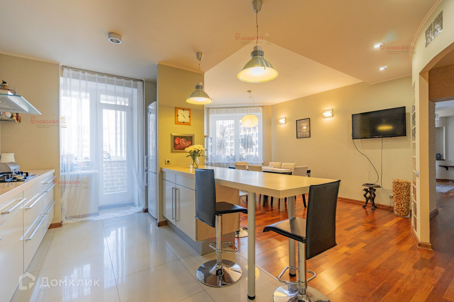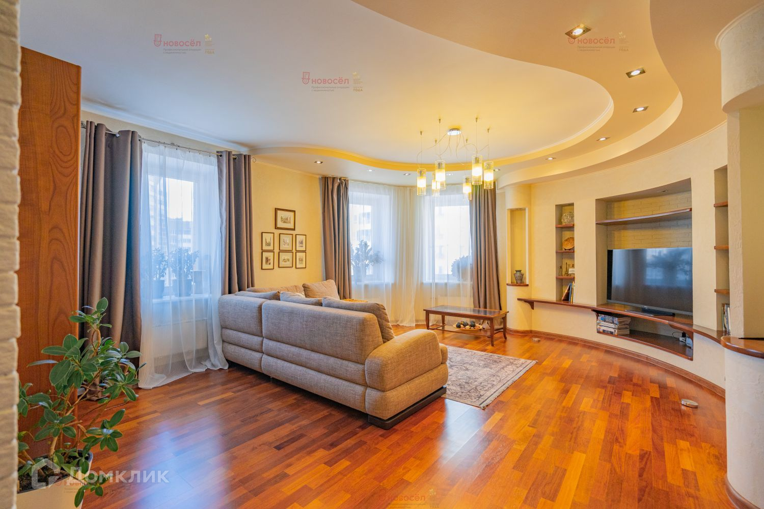 Квартира имеет идеальную планировку: просторная кухня-гостиная 28,5 кв.м. с гарнитуром и встроенной техникой высочайшего качества Bosh. Просторная прихожая с гардеробной системой, 2 санузла, душевая, сауна, 4 изолированные комнаты на разные стороны света, 3 лоджии. Чудесные виды на город и Ленинский ЗАГС.