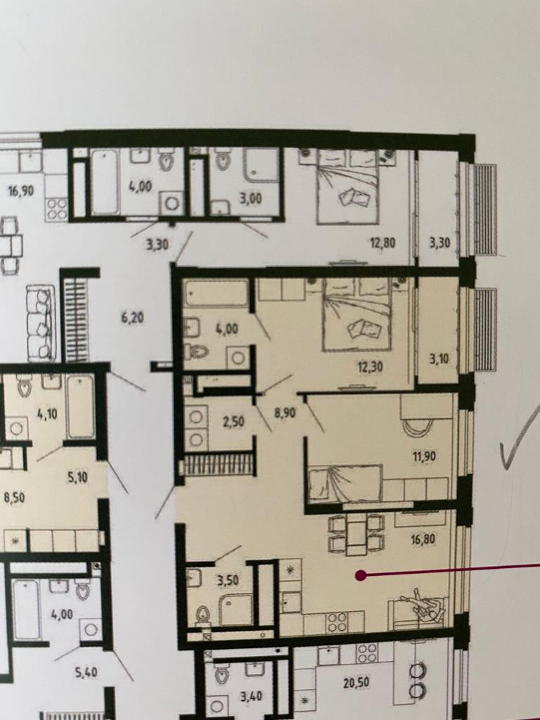 Высота потолков 2.8 м