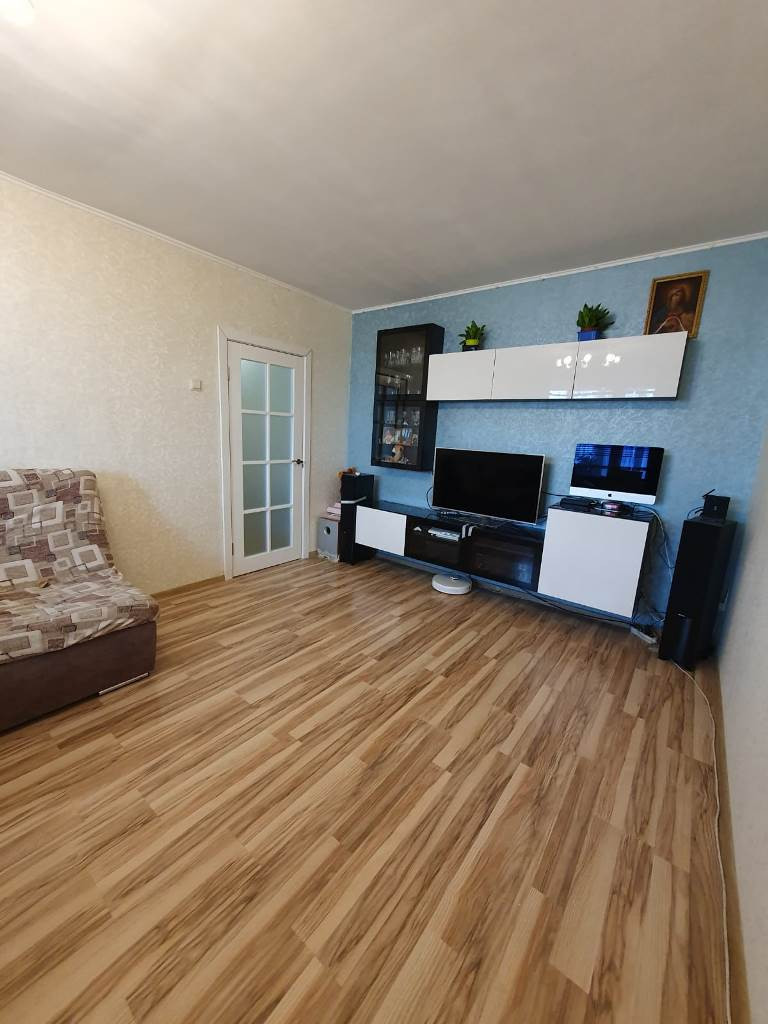 Квартира улучшенной планировки: зал 18 кв.м., спальня 11 кв.м., просторная и  широкая  лоджия площадью 8,8  кв.м., раздельный санузел. Во всей квартире выполнен качественный ремонт за исключением коридора и туалета. В квартире остается кухонный гарнитур и встроенный шкаф-купе в коридоре.