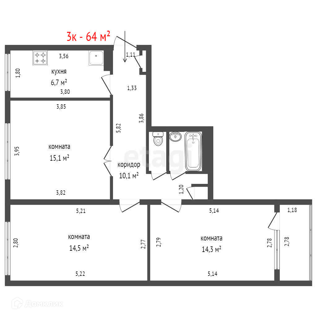 Общая площадь 64 м2