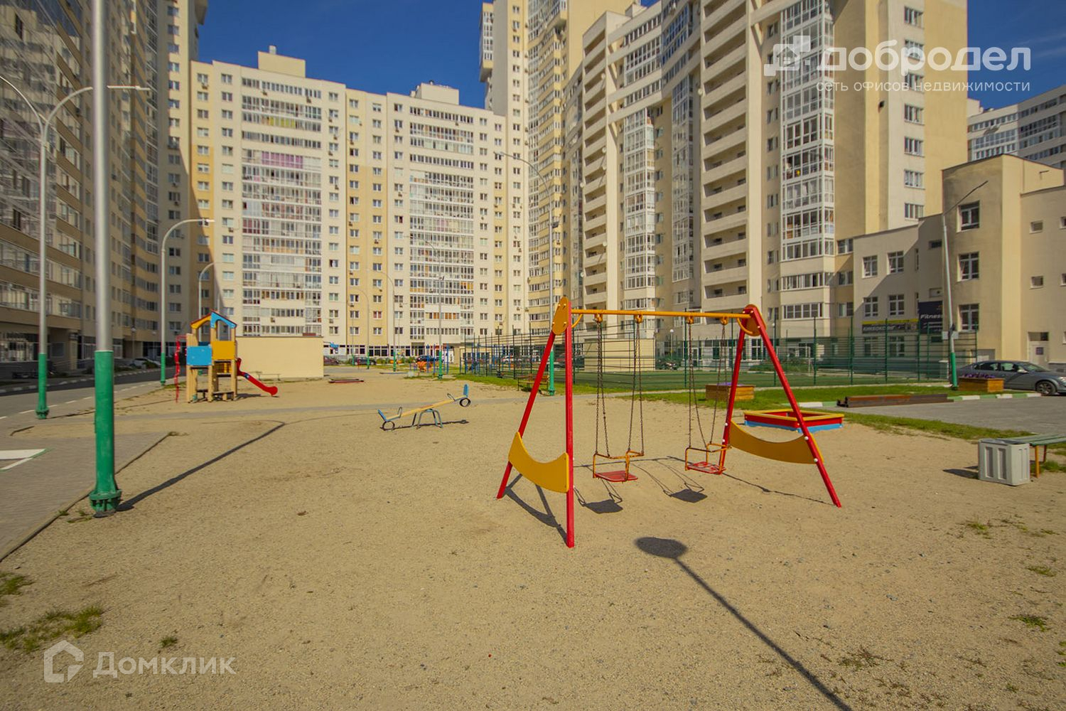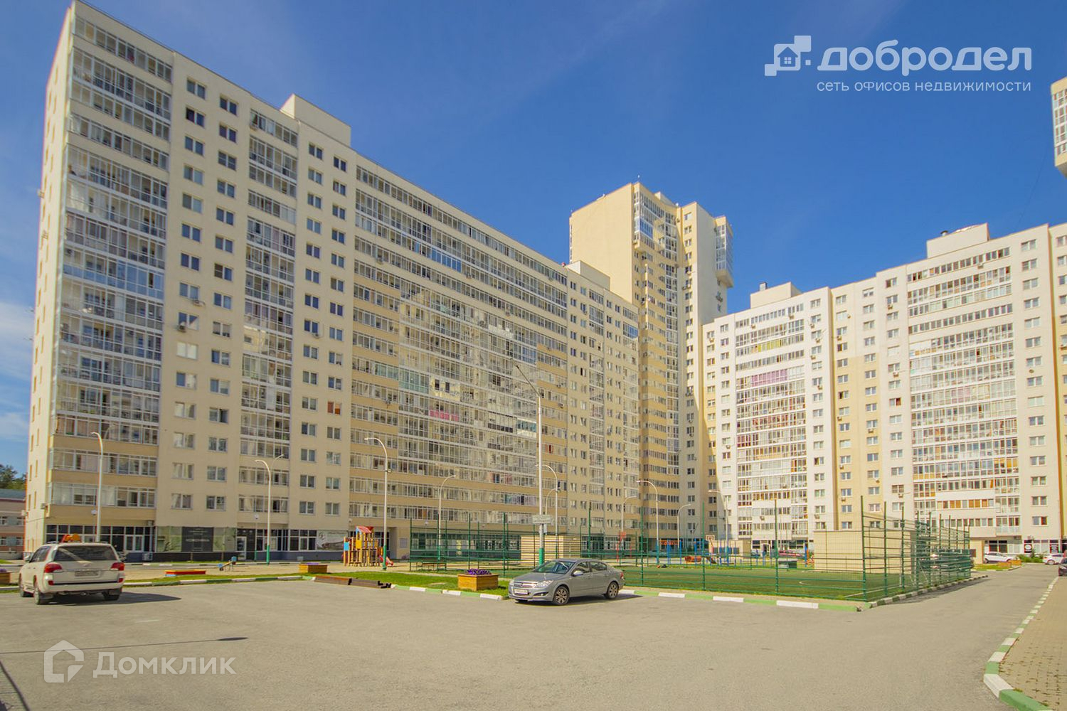Двор огорожен, без машин, охраняемый, есть видеонаблюдение. Своя отличная детская площадка, есть футбольное и волейбольное поле. В доме свое ТСЖ. Наземная парковка, подземный паркинг.