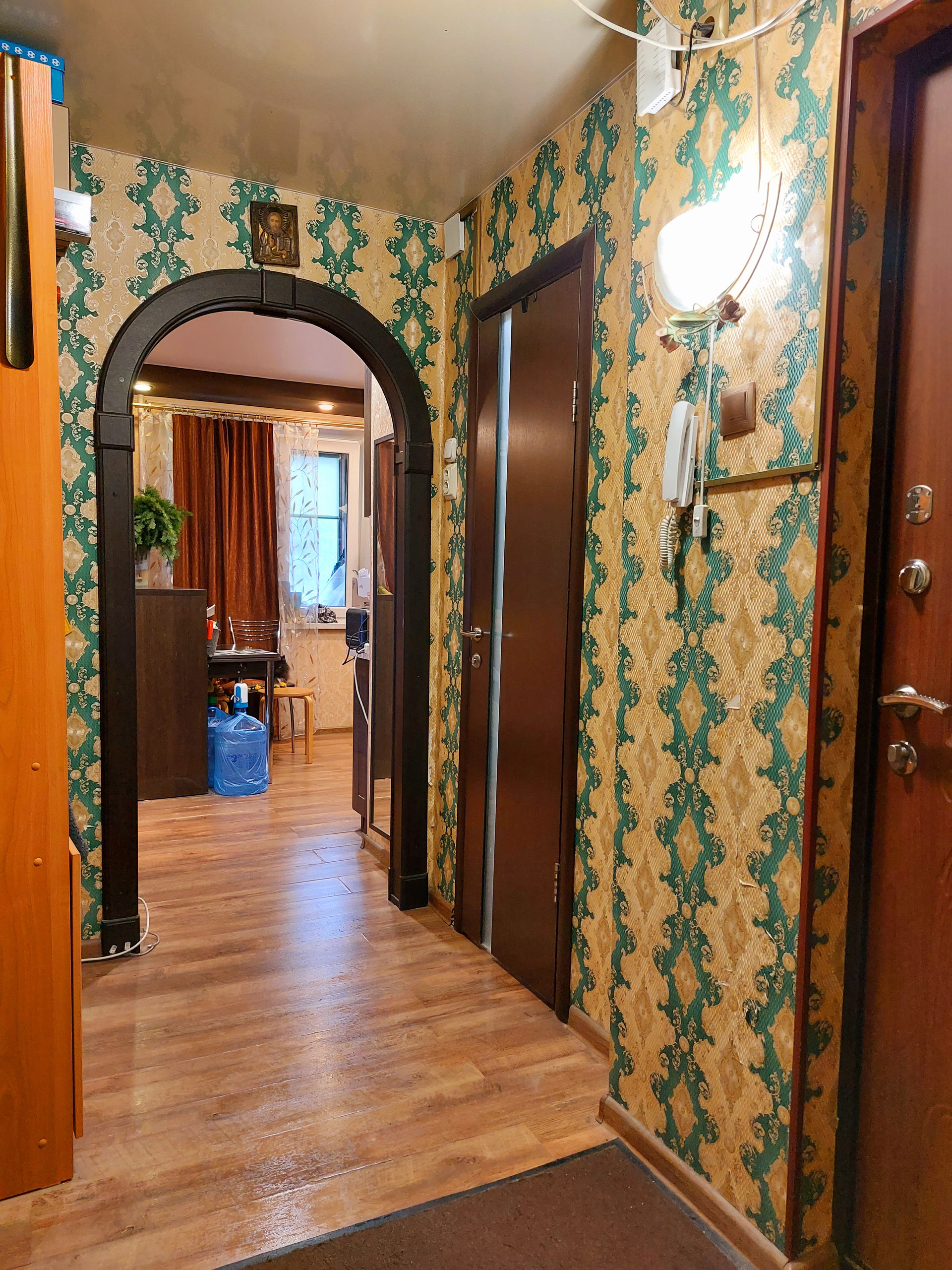 В квартире сделан капитальный ремонт - заменены батареи, окна, входная, межкомнатная дверь, а также установлена арка и шпоновая дверь в ванную комнату, соединенную с туалетом. Выровнены стены, заменена плитка в санузле и на кухне, пол - ламинат.