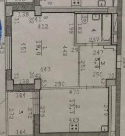Просторный коридор, изолированная комната 19,1 квм, кухня 13,1 квм.