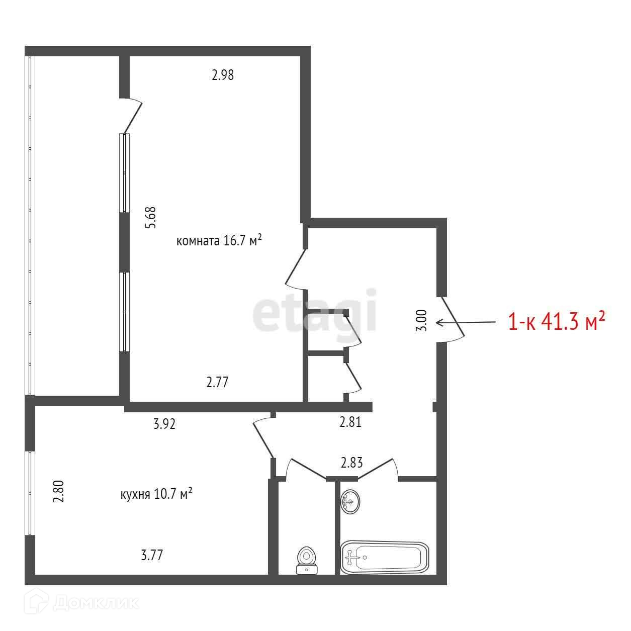 Общая площадь 41.3 м2
