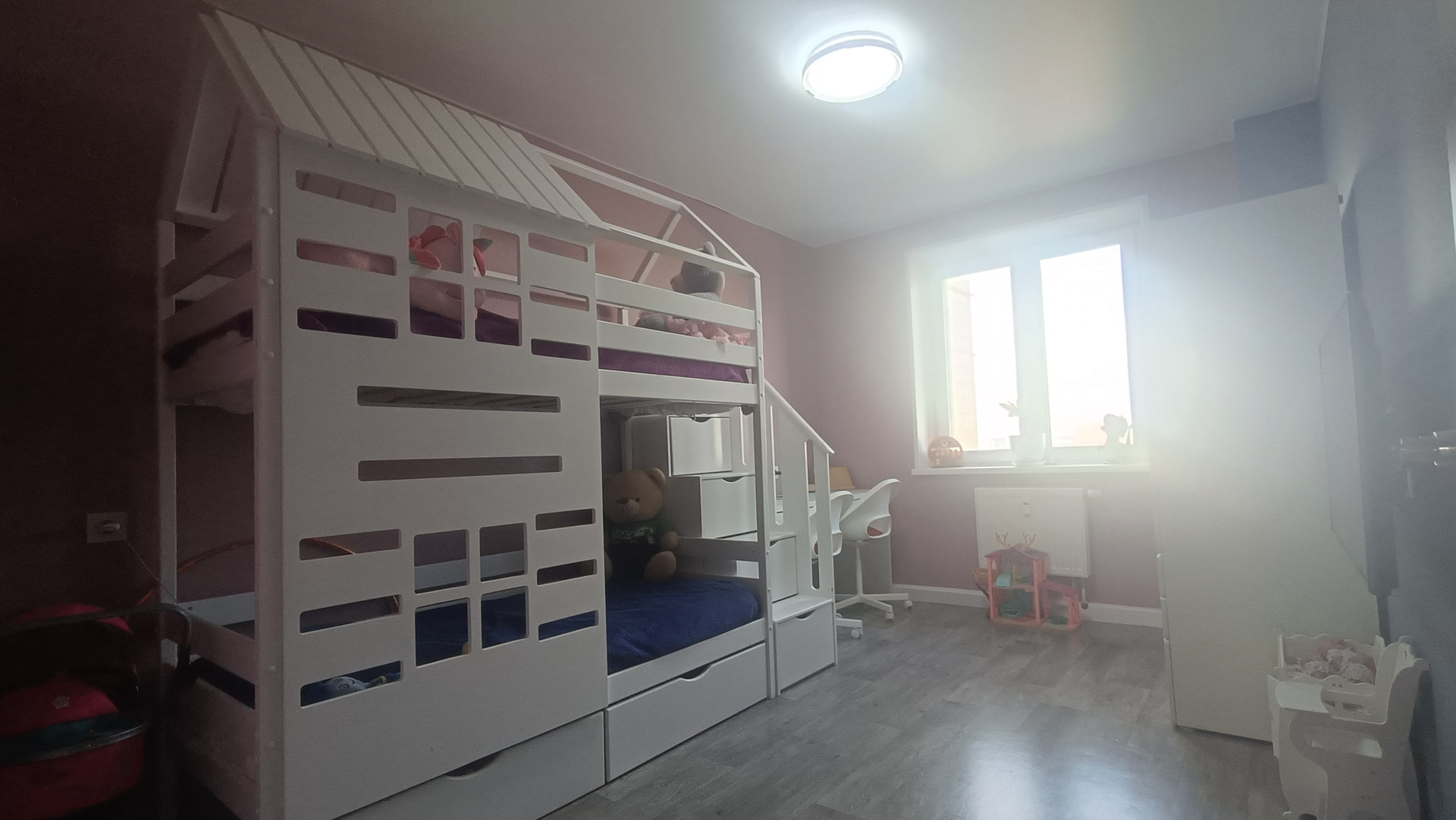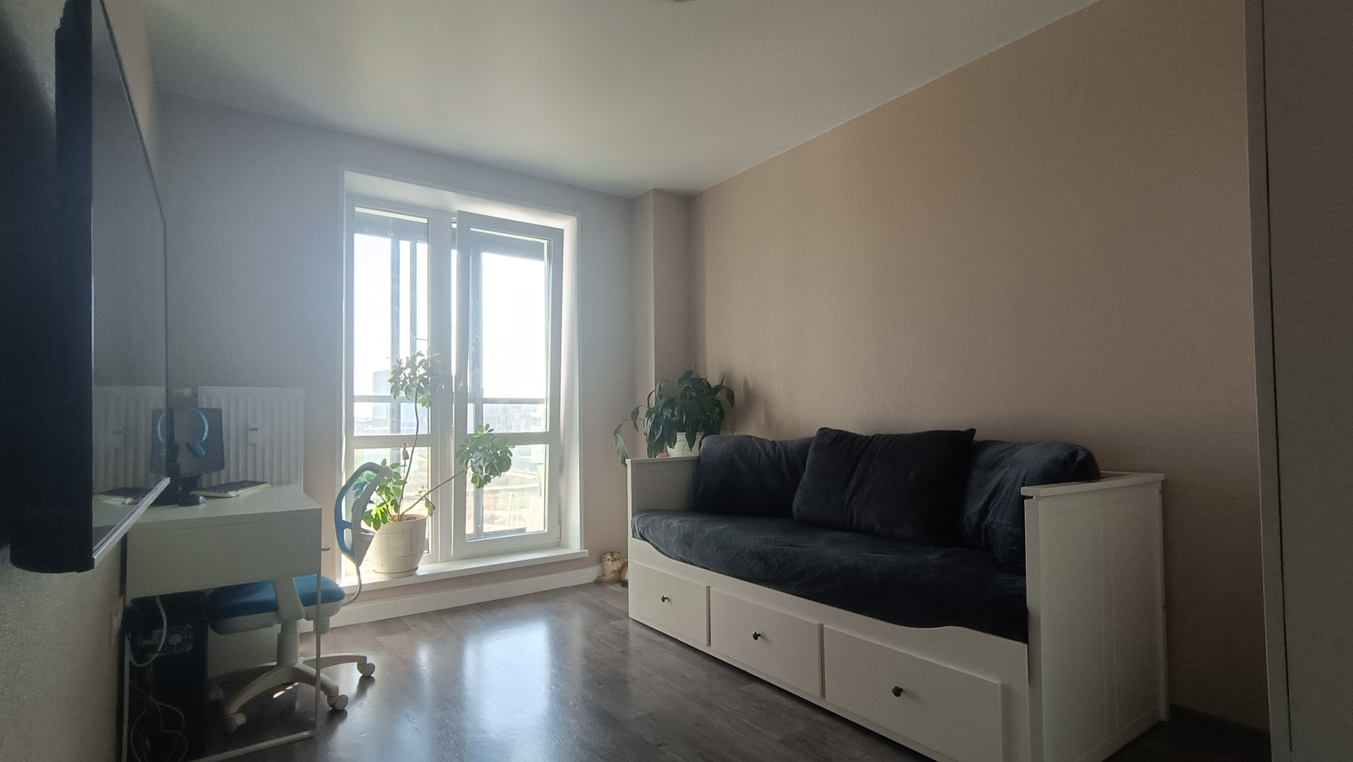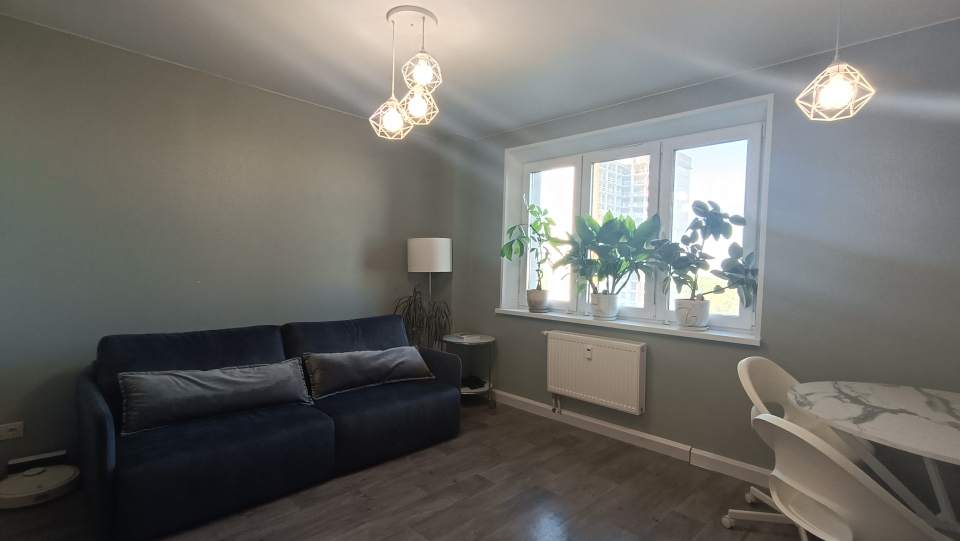 В квартире очень много света, а также оптимальный микроклимат: очень тепло зимой (убавляем радиаторы на минимум) и достаточно свежо летом. Окна на две стороны, с прекрасными видами. Достаточно низкие коммунальные платежи.