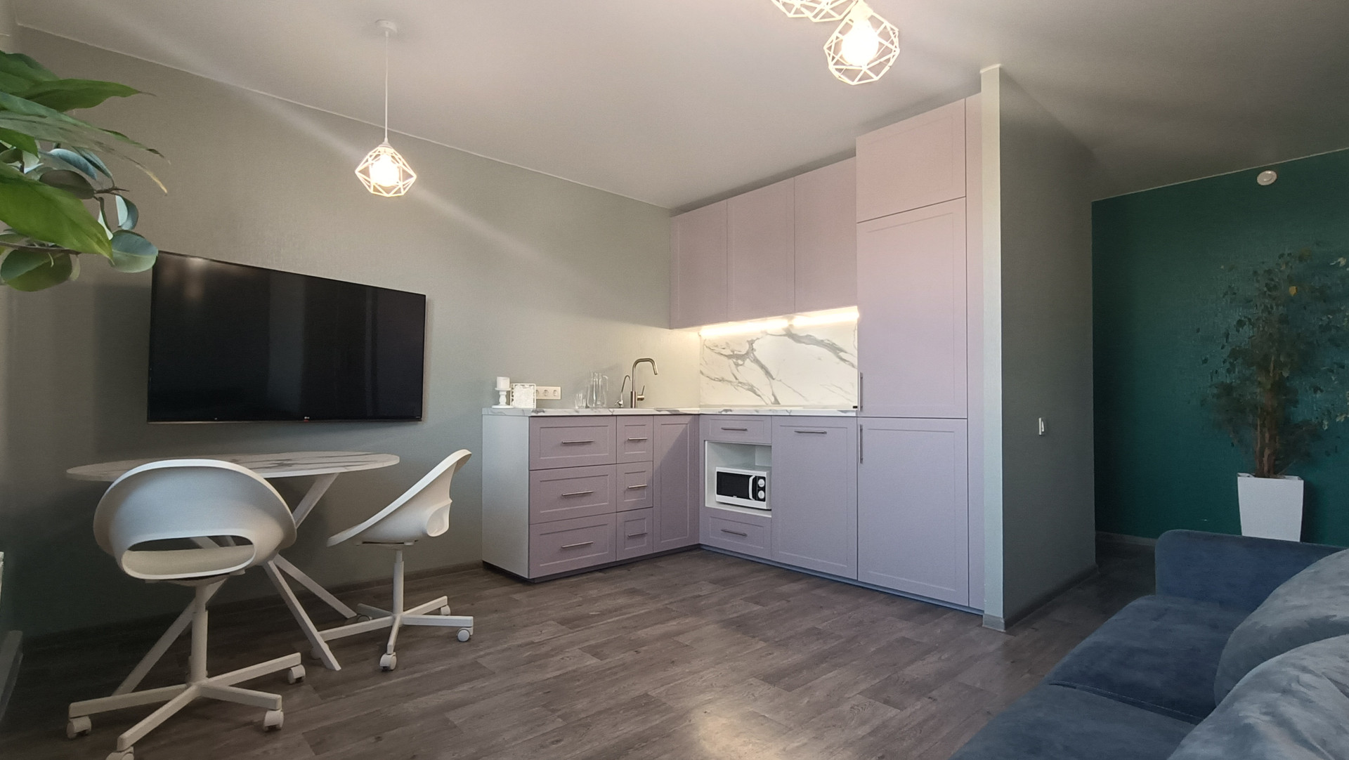 Выполнен свежий современный ремонт. Новым собственникам остается новый кухонный гарнитур, с вытяжкой и варочной поверхностью (холодильник по согласованию), мебель в коридоре, большой шкаф и раздвижная кровать в спальне.