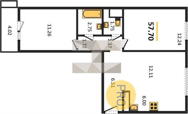 Общая площадь 55.7 м2