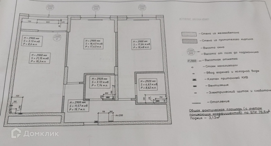 Высота потолков 2.9 м