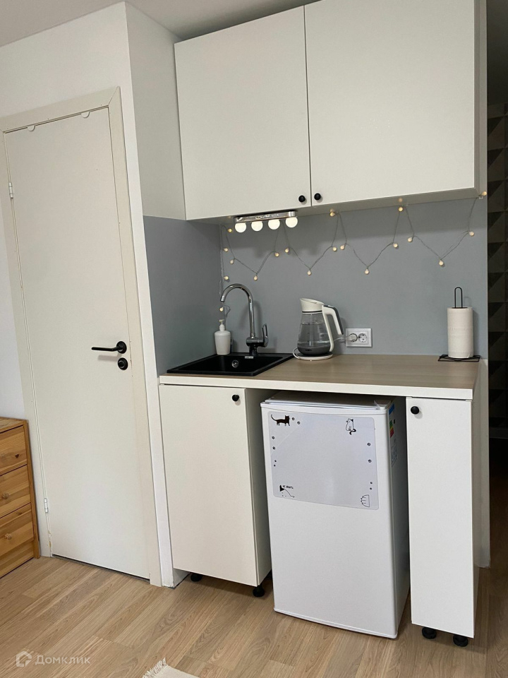 Просторная студия с зоной кухни.