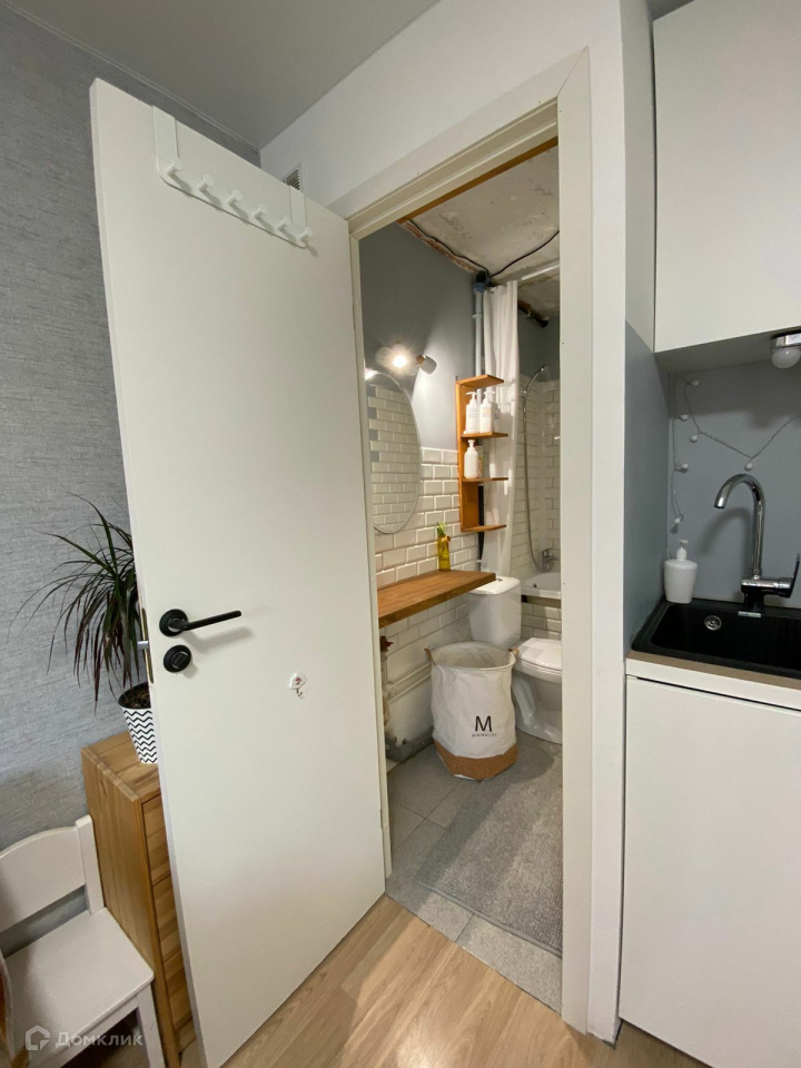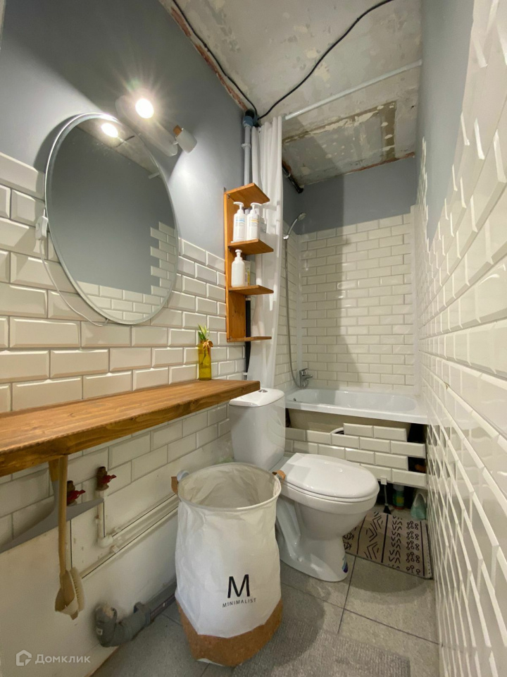Совмещенный сан узел, в нем установлены:раковина, ванная, унитаз, зеркало.