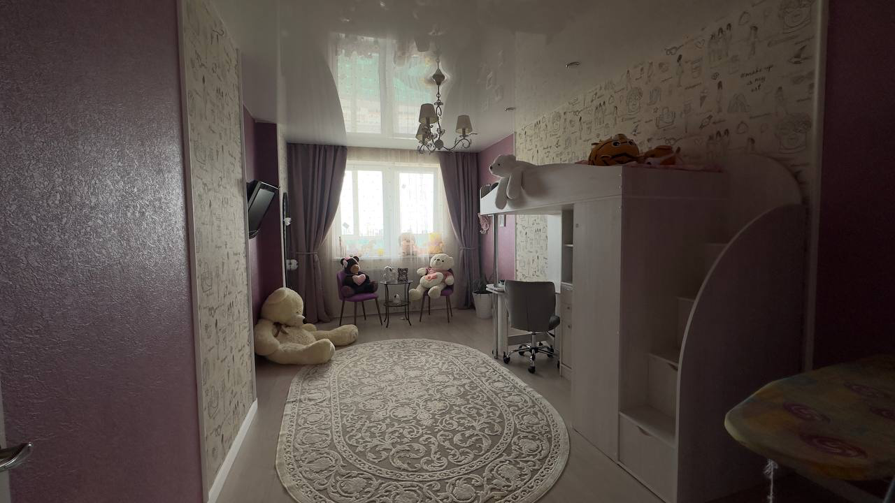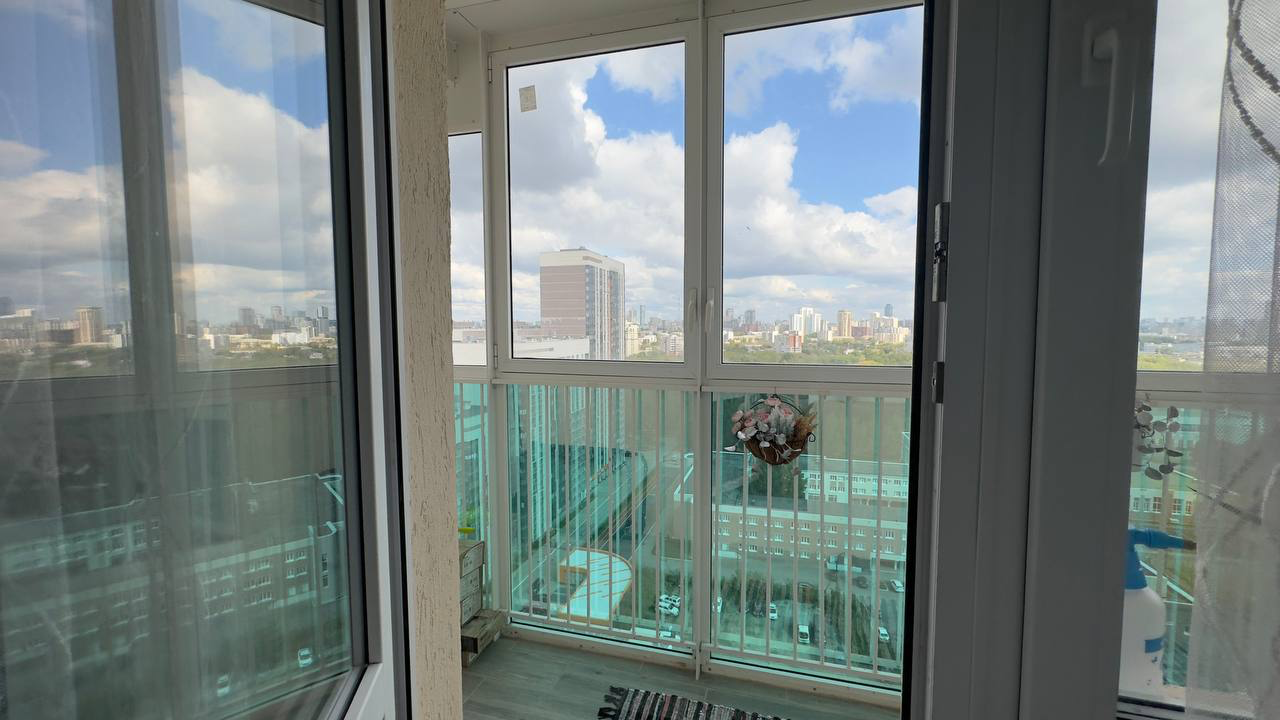 Удобное расположение комнат с видом на двор и парк. Солнечная и теневая сторона. Большой балкон с панорамными окнами с видом на парк, школу олимпийского резерва и футбольный стадион.
