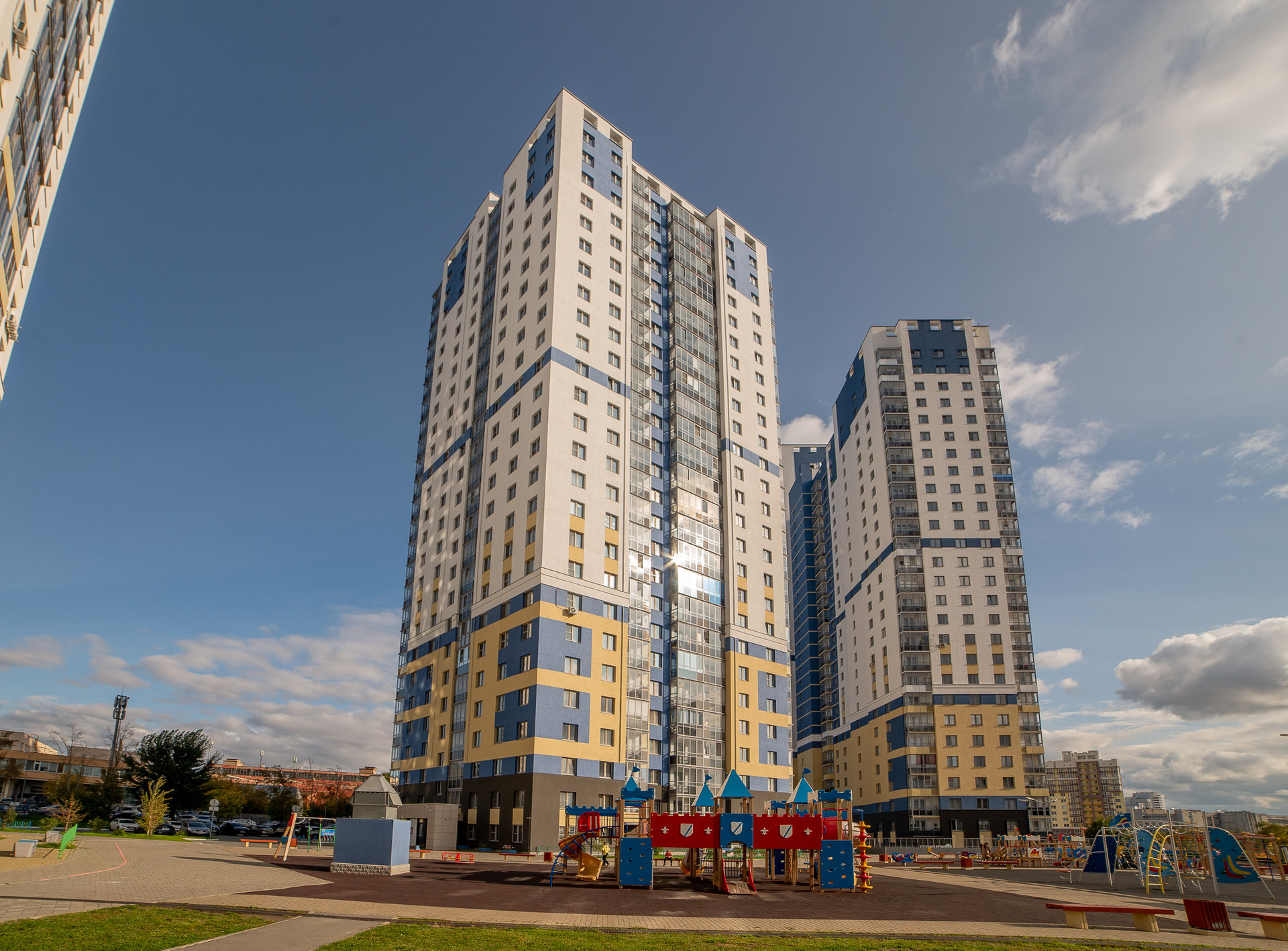 детская площадка. В доме паркинг, лифт спускается на -1 этаж, вокруг жилого комплекса бесплатная парковка.