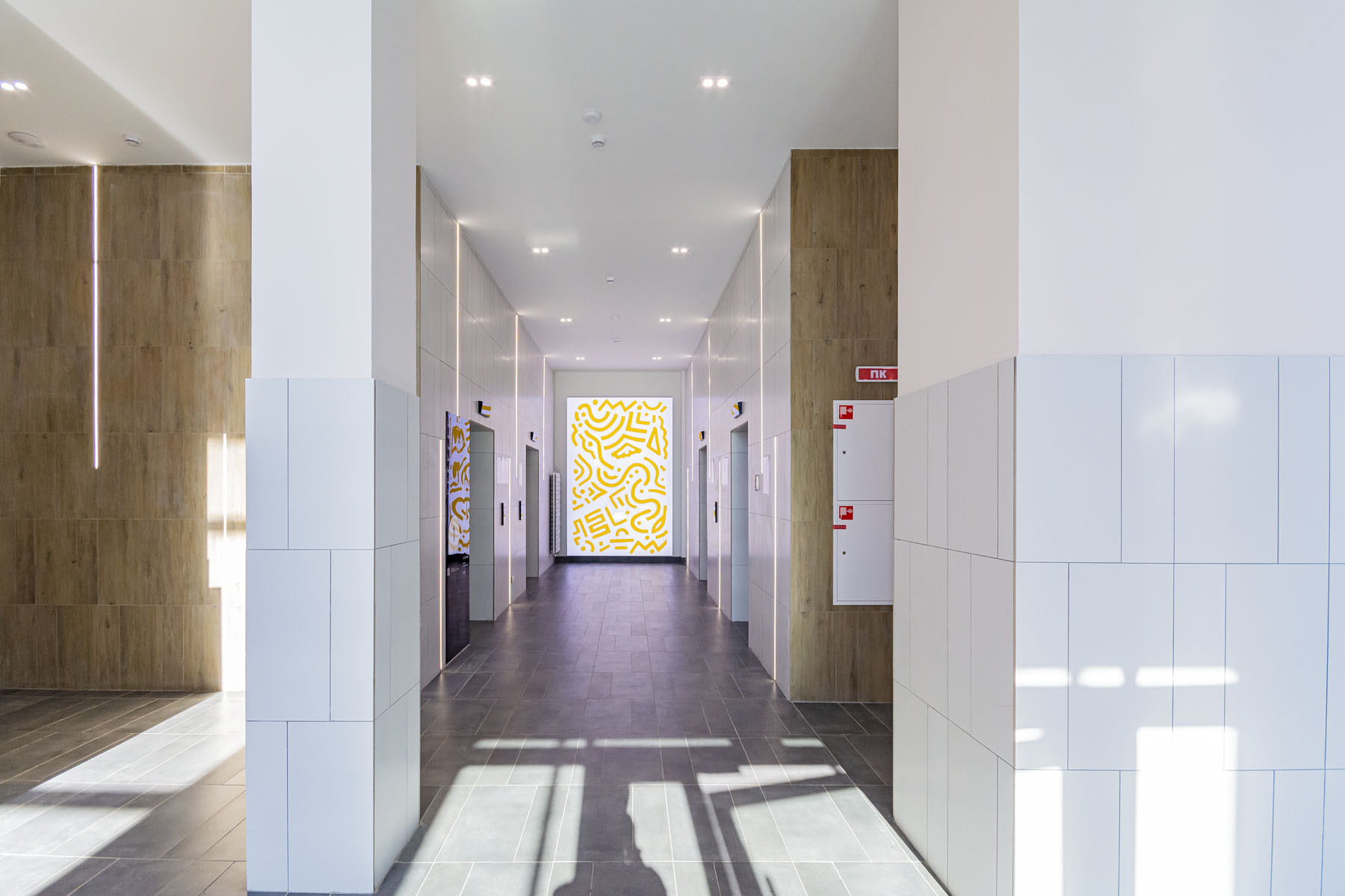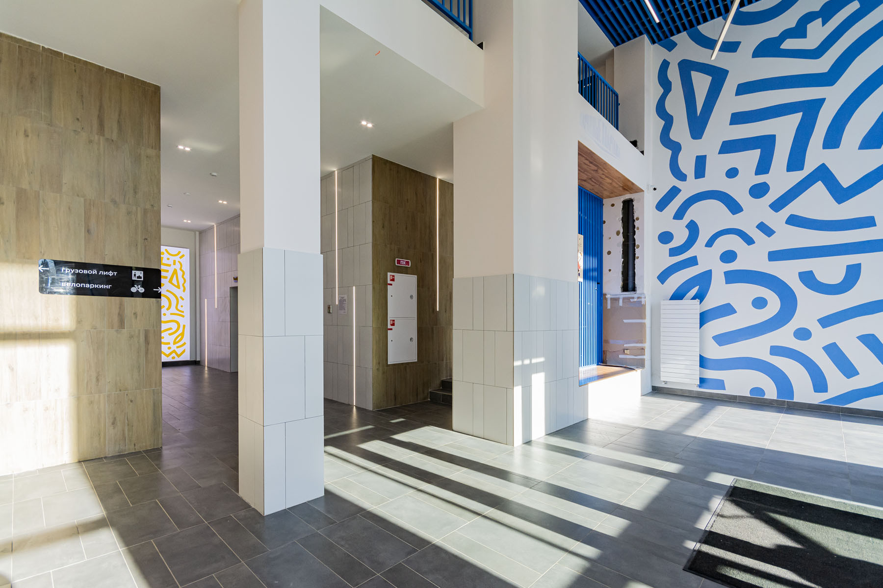 Двухэтажные парадные холлы, оснащены удобной мебелью, сделаны максимально высокими и имеют выходы как на улицу, так и во двор, а сам двор и детская площадка расположена на стилобате. На цокольном этаже ЖК расположены келлеры где можно хранить какой либо инвентарь, под двором комплекса расположен двухуровневый подземный паркинг, спуститься в который можно на лифте.