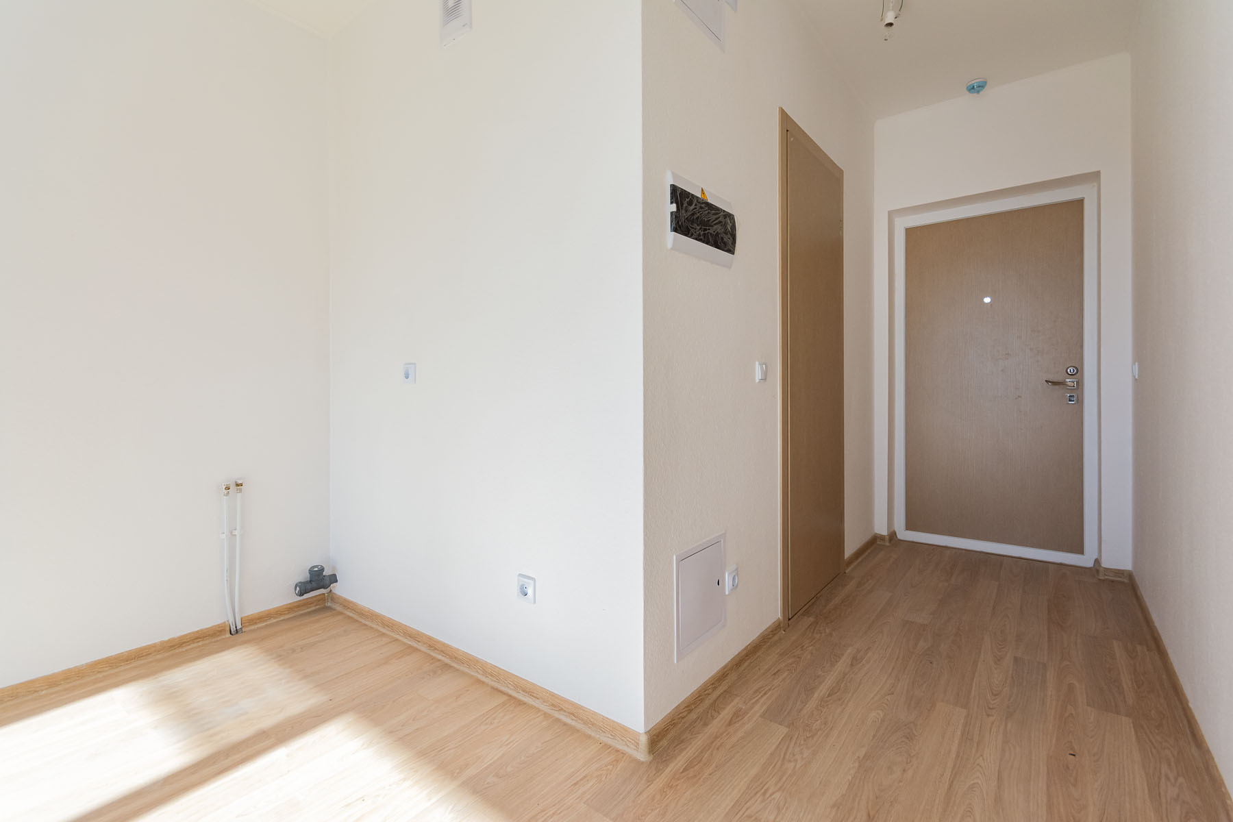 Квартира с готовой чистовой отделкой, входные сейф-двери, обои, ламинат, в с\у на полу кафель, установлена раковина, смеситель, установлены радиаторы с терморегуляторами, автоматическая система приборов учёта, система дополнительной очистки воды.
