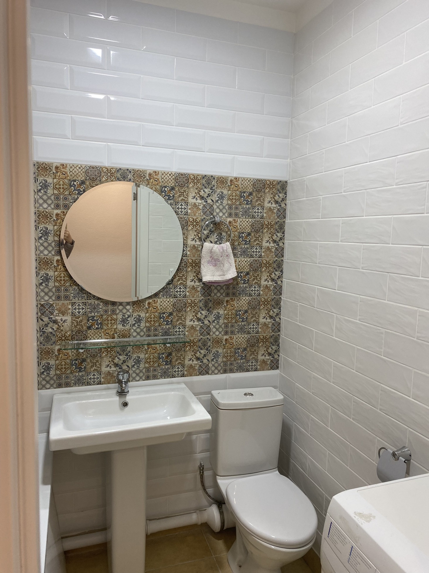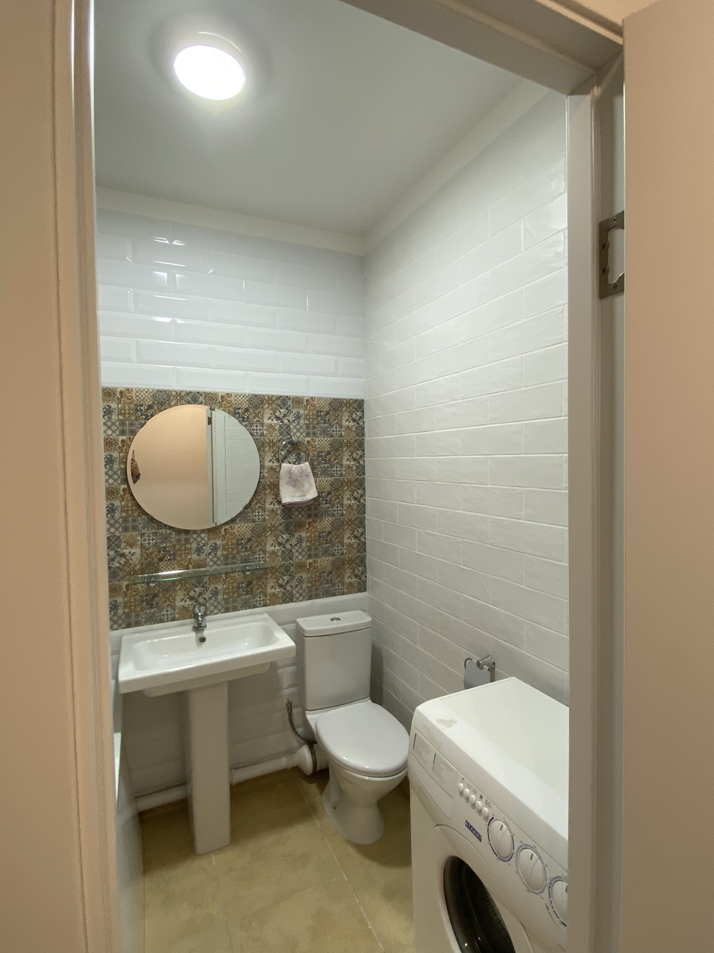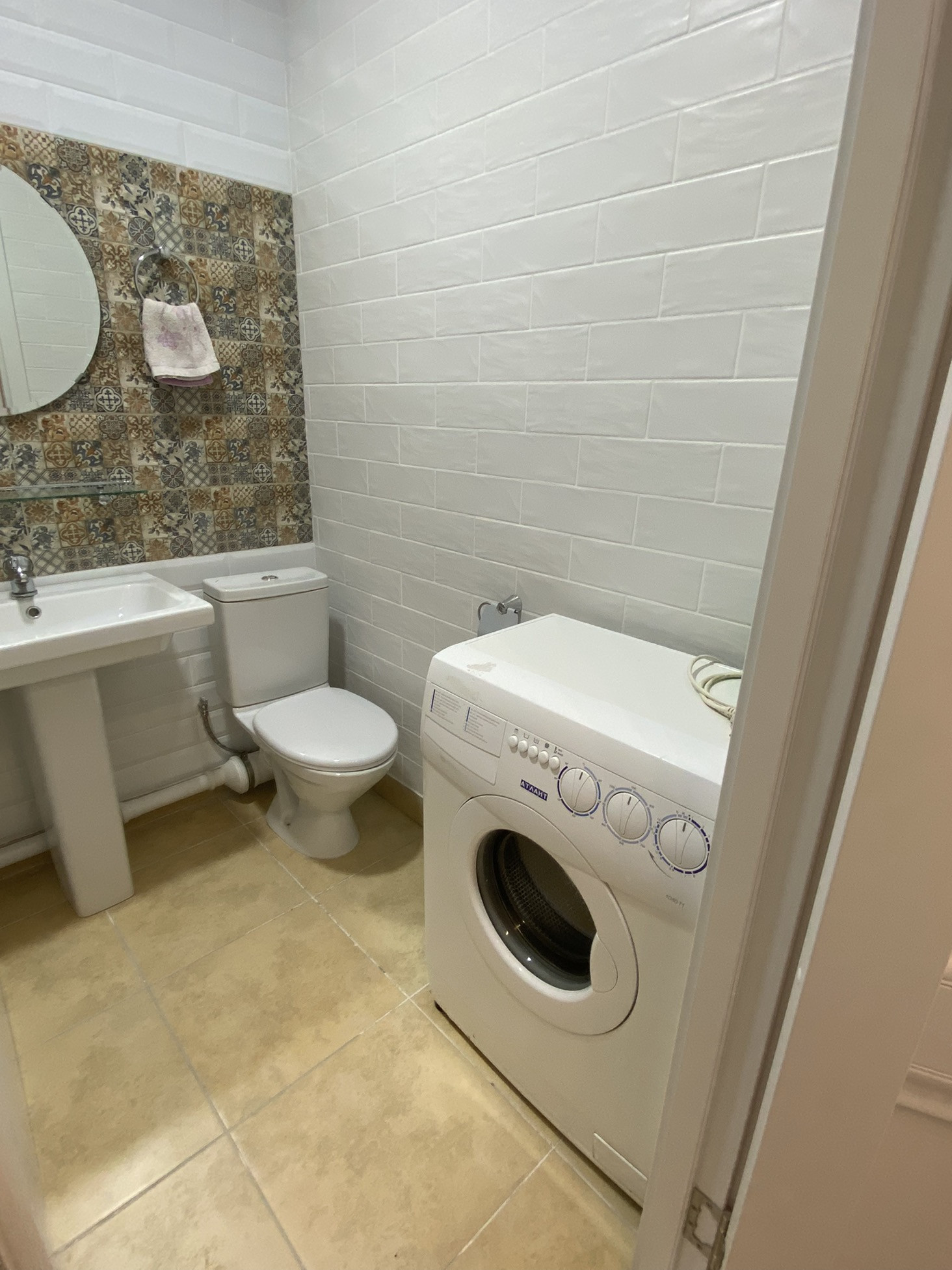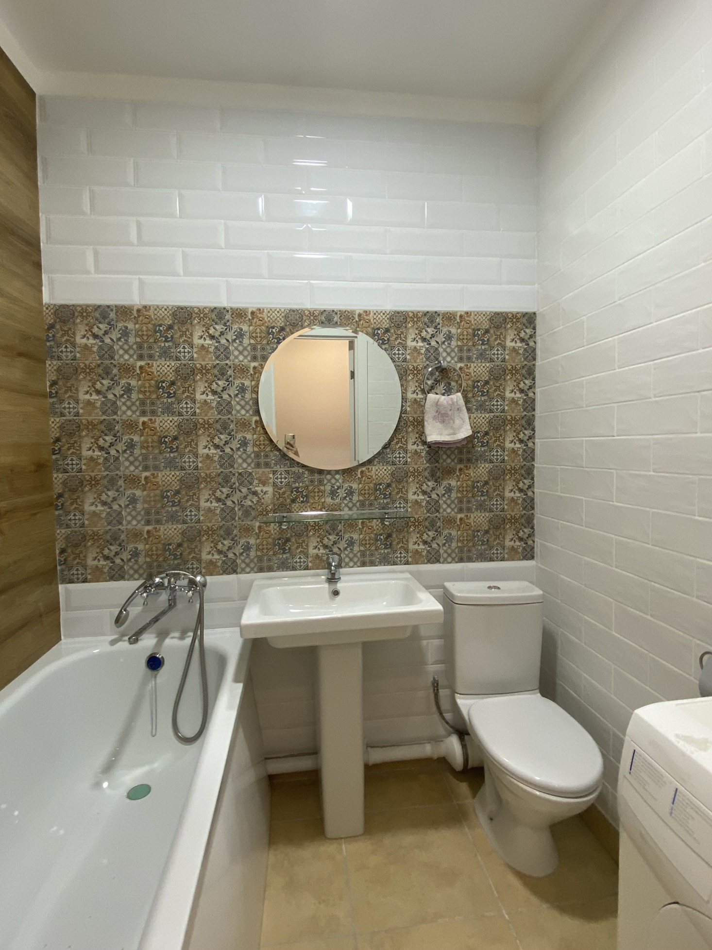 Санузел - совмещённый. В ванной комнате сделан ремонт, облицовка стен керамической и кварцвиниловой плиткой, уставлена новая ванная, раковина, рабочая стиральная машина.