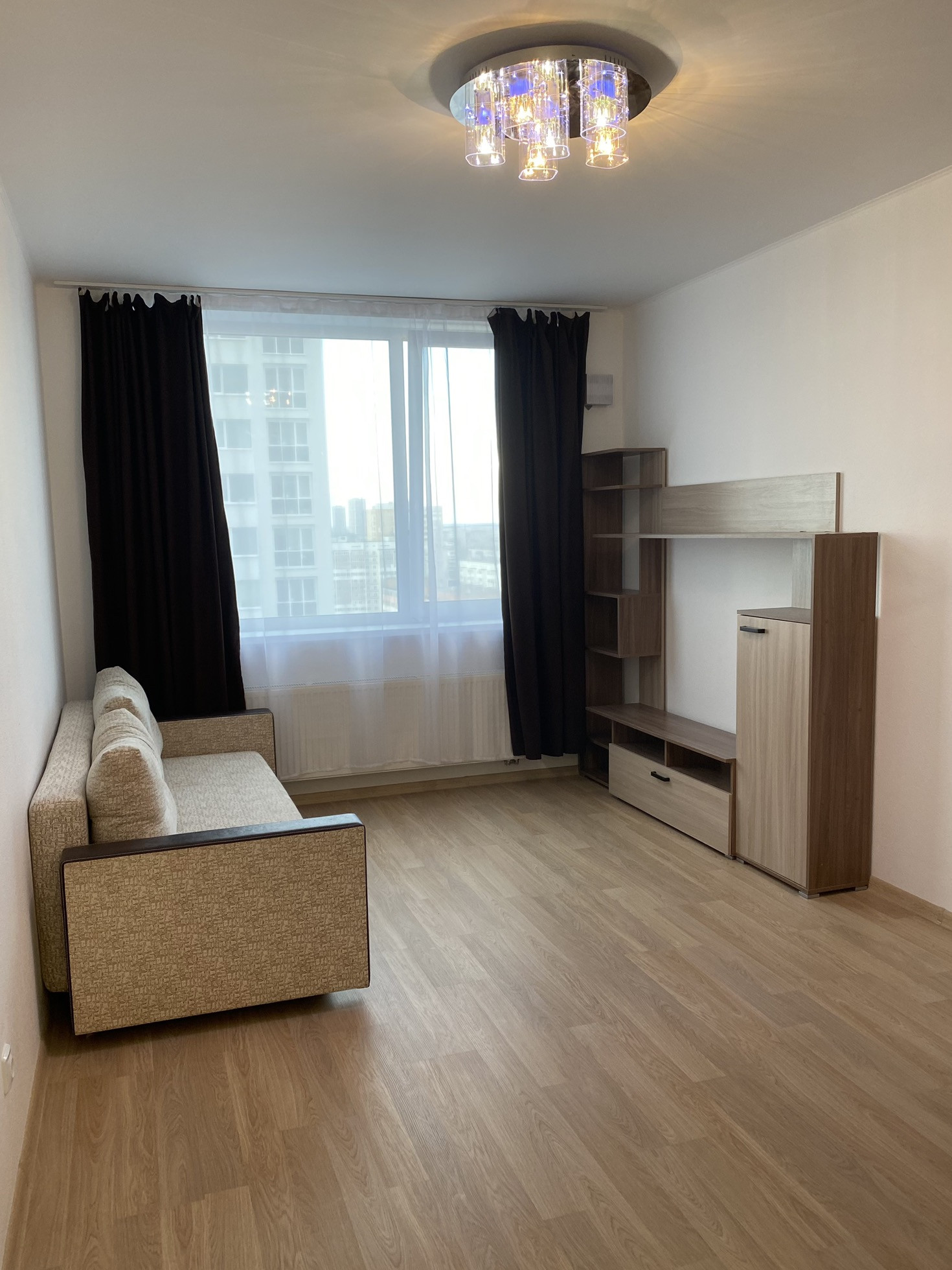 В квартире есть все необходимое: диван-книжка, шкаф под ТВ с полками, вместительный кухонный гарнитур, варочная панель, микроволновая печь, холодильник, стиральная машина. Все остаётся новому владельцу.