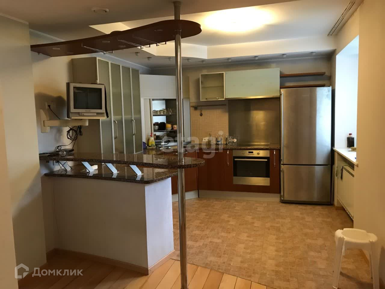Уникальная квартира с индивидуальным оформлением интерьера. Все изменения в планировке утверждены в соответствии с законодательством. Кухня-гостиная, оборудованная по индивидуальному заказу, с встроенной мебелью и техникой. Рабочая поверхность кухни выполнена из натурального камня. Просторная гостиная с прилегающей лоджией. Главный спальный блок с вместительным шкафом для одежды, встроенным сейфом и ванной комнатой, оснащенной джакузи и зеркалом. Потолки имеют несколько уровней, возможны различные варианты освещения. Пол с подогревом, покрытие - паркет. Система управления микроклиматом со скрытыми коммуникациями по всему пространству. Прихожая оборудована гардеробной с раздвижной зеркальной дверью, предусмотрена охранная сигнализация. Квартира отличается толстыми кирпичными стенами, под полом проведены трубы с теплой водой. В результате, жилье получается очень теплым и тихим. Имеется общая прихожая на две квартиры и кладовка на этаже