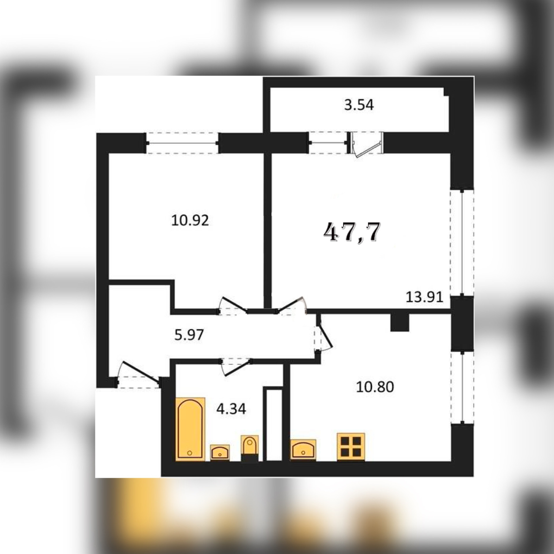 Общая площадь 47.7 м2