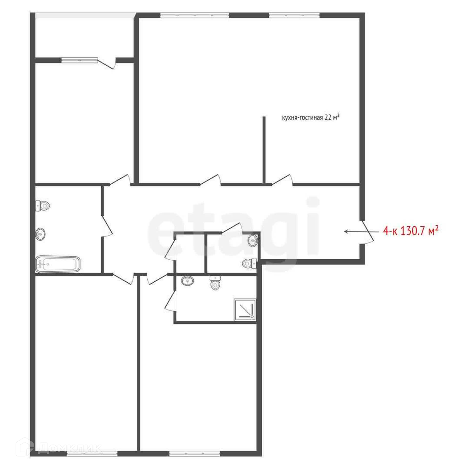 Общая площадь 130.7 м2