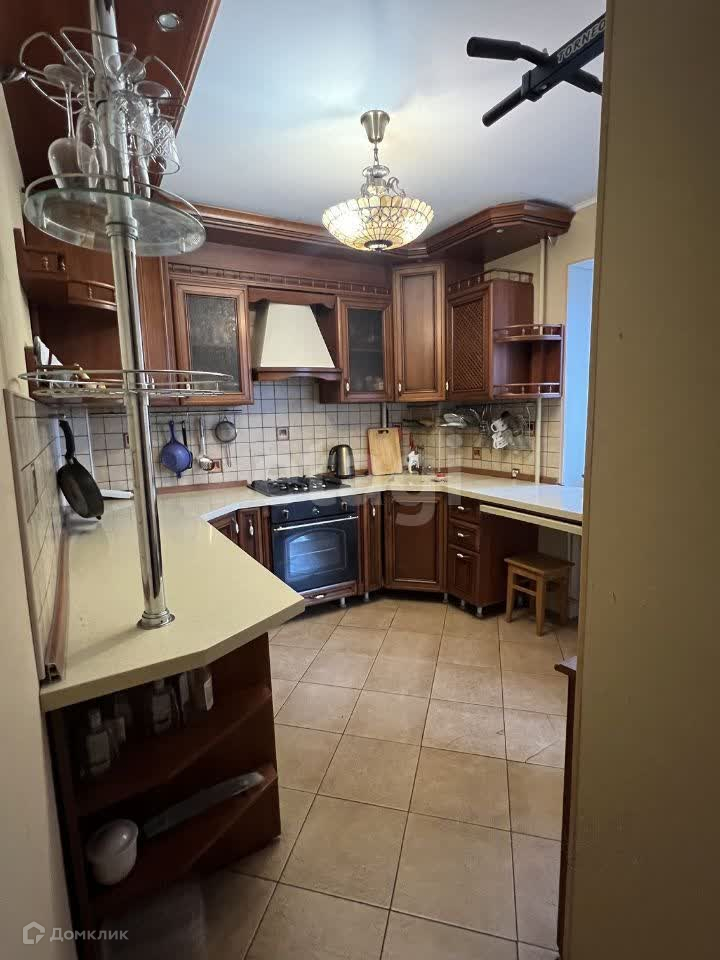красивая квадратная отдельная кухня с классическим гарнитуром из настоящего дерева, с выходом на вторую тёплую лоджию с теплым полом и двойными стеклопакетами.