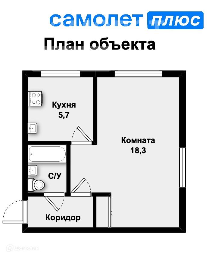 Общая площадь 30.1 м2