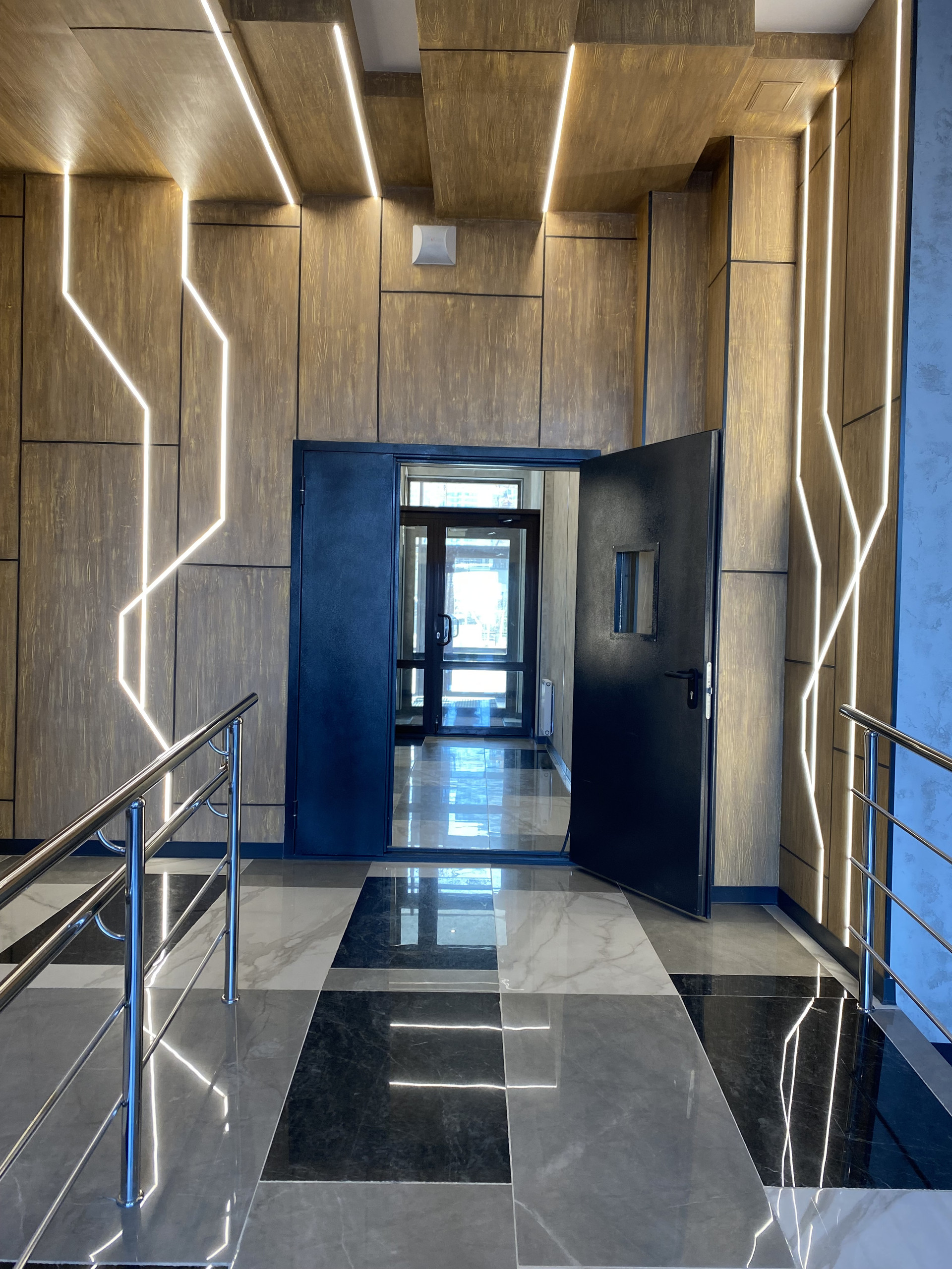 В соседнем подъезде, на первом этаже в доме, расположен магазин Пятерочка.