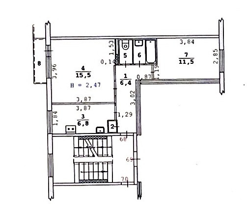 Площадь кухни 7 м2