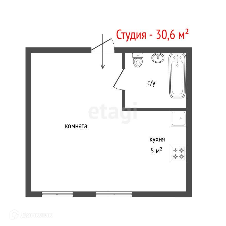 Общая площадь 30.6 м2