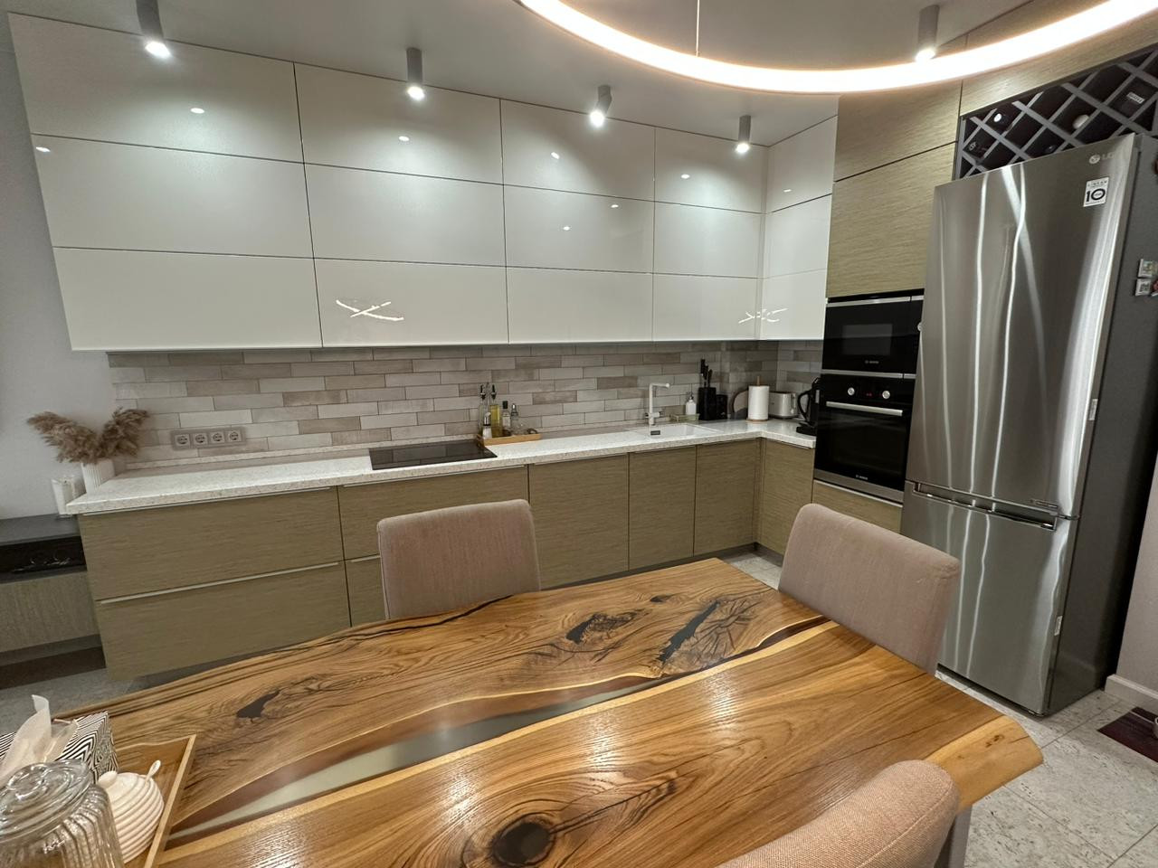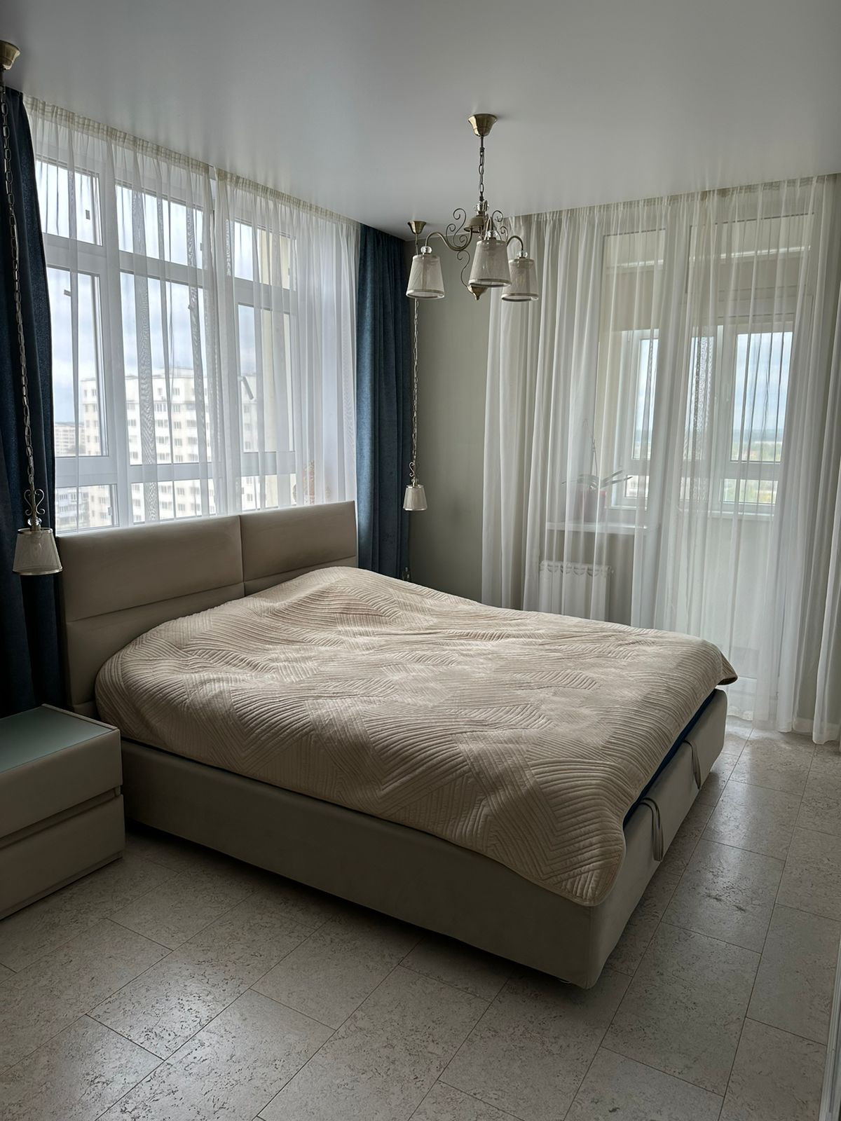 Каждый уголок в квартире продуман дизайнером. Осуществлён в светлых тонах и в одном стиле из высококачественных материалов. Вид из окна выше макушек деревьев. На полу покрытие пробкового дерева (из ценных и дорогих пород древесины . Рисунок на панелях индивидуален и неповторим, так как это природный материал. Достоинства: долговечность, упругость, амортизационные свойства, пробка не притягивает к себе пыль, является антистатиком, гипоаллергенность, сохраняет тепло, обладает звукоизолирующими свойствами))).