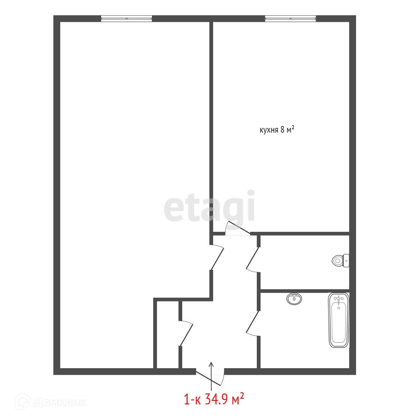 Общая площадь 34.9 м2