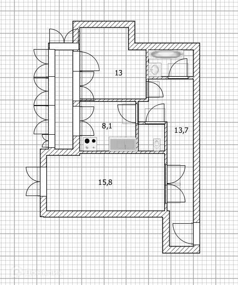 • комнаты – 15,8 и 13 м2