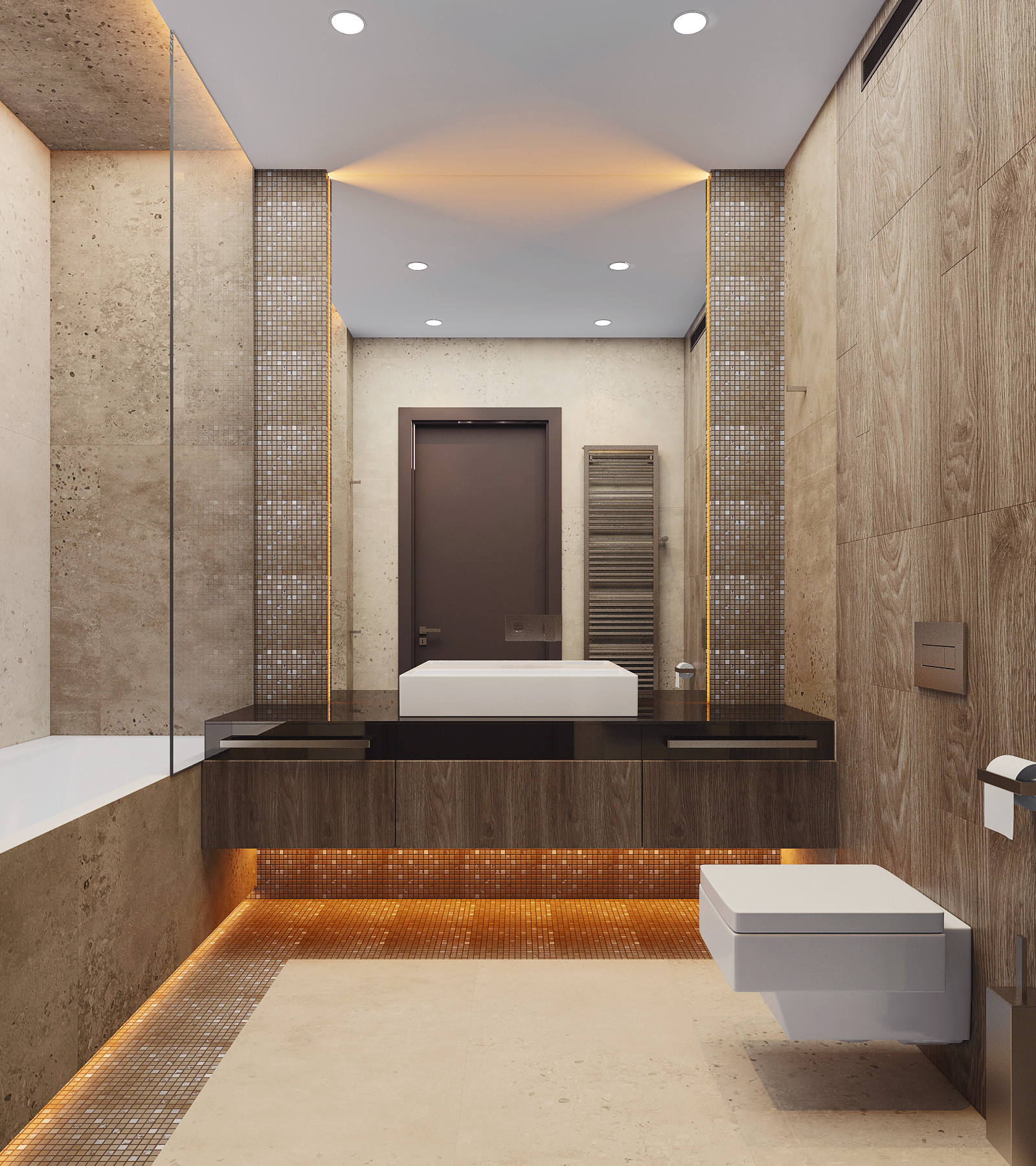 Лифтовые холлы на этажах выполнены в индивидуальном дизайне с зеркалами и светильниками, качество отделки зависит от этажа (чем выше этаж, тем лучше отделка и входная дверь в квартиру).