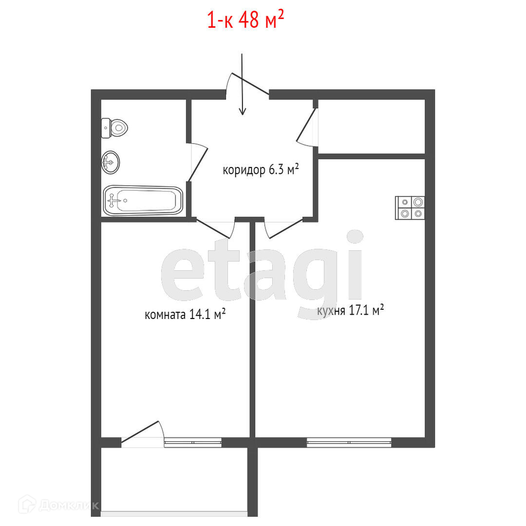 Общая площадь 48.7 м2