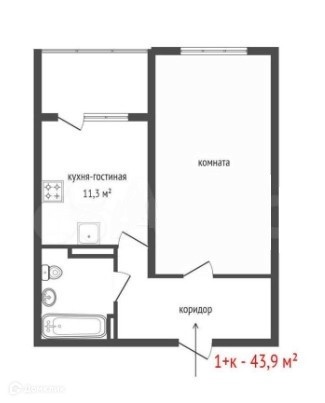 Общая площадь 43.9 м2