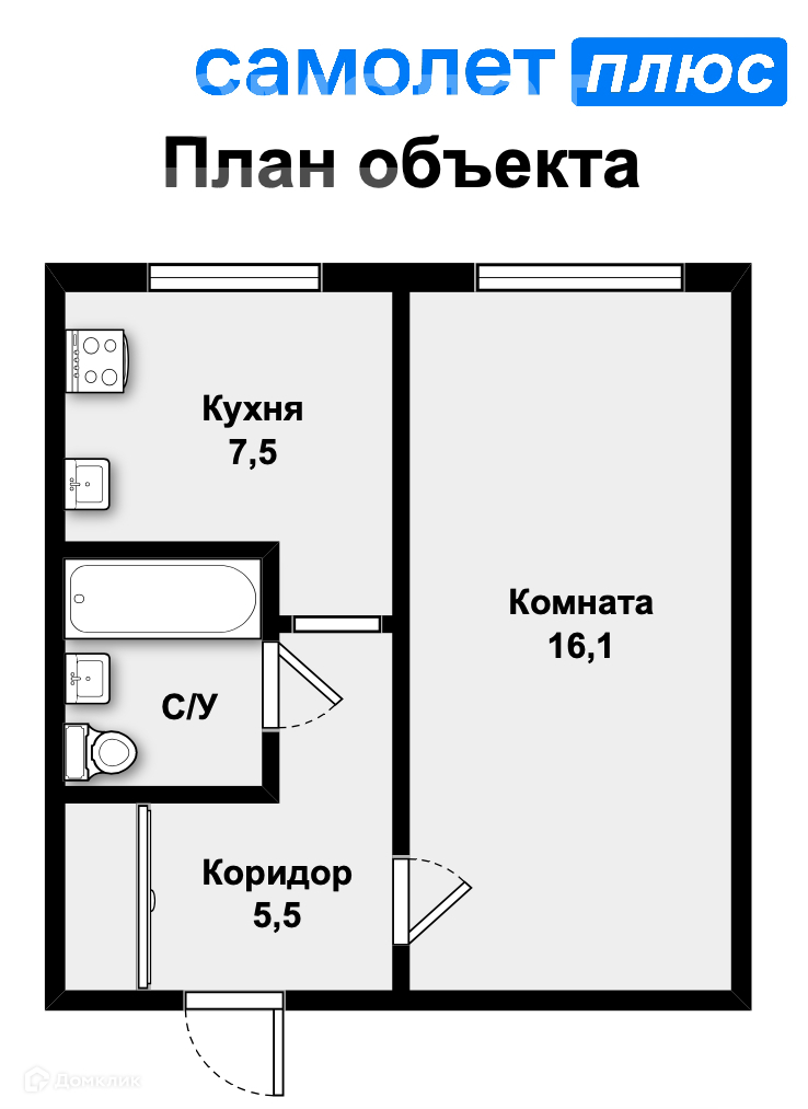 Общая площадь 34.4 м2